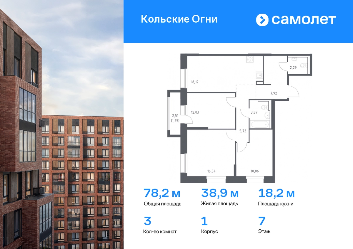 Строим кварталы для жизни с заботой о будущем. Предлагается 3-комнатная квартира комфорт-класса 78,15 кв.м в корпусе 1 на 7 этаже, в ЖК «Кольские Огни» Квартира без отделки. Доступность опции «отделка» и возможность комплектации мебелью и декором уточняйте у застройщика. Приобрести квартиру возможно по специальным акциям от застройщика, с текущими условиями акций можно ознакомиться в блоке «Акций». Цена динамическая и может отличаться, уточняйте актуальность у застройщика. Жилой комплекс «Кольские Огни» будет построен в Мурманской области, в городе Кола. Путь до центра Мурманска будет быстрым — всего 25 минут на машине. Рядом — Поморская набережная, парк, тундровый сад и лес всего в 10 минутах пешком. На первых этажах домов откроются кофейни и магазины, фитнес-зал и салон красоты, аптека, пункты выдачи заказов. Рядом с жилым комплексом работают детский сад, спортивная школа с бассейном и ФОК. Во дворе — озеленение, спортивные площадки, ремонт велосипедов, догхабы. Еще на территории квартала построим паркинг с зарядкой для электромобилей. Корпуса высотой 9–12 этажей и 14–17-этажные башни украшают деревянные панели. На входе в подъезды не будет ступеней и высоких порогов. После прогулки велосипеды и коляски можно оставить в местах хранения. Продуманные планировки от небольших студий до просторных 4-комнатных квартир. Отделка на выбор: готовая, White Box или вариант без нее. Выбирайте варианты без отделки, если хотите реализовать собственные решения.#yan19-2r1678043#О застройщике