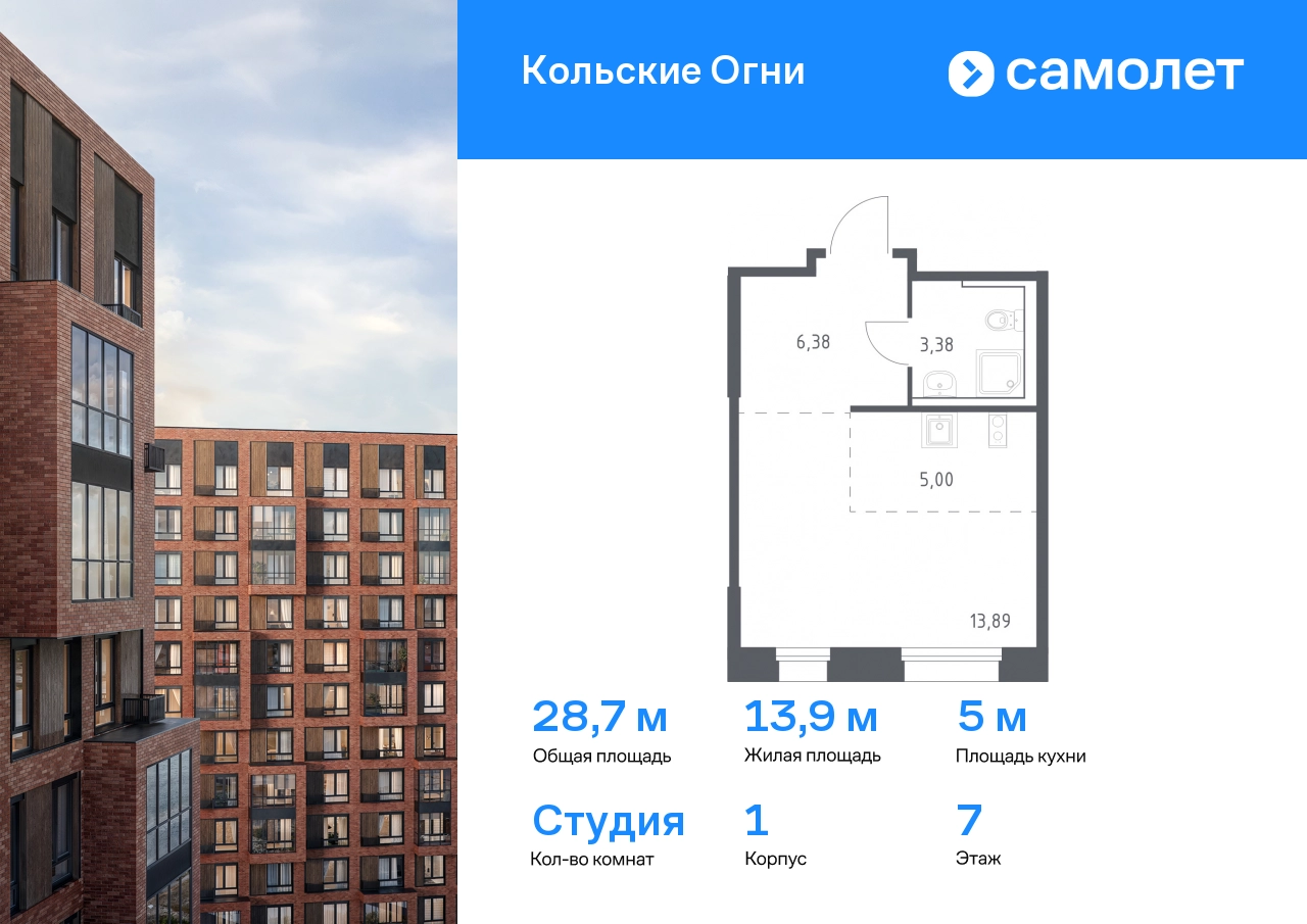 Строим кварталы для жизни с заботой о будущем. Предлагается квартира студия комфорт-класса 28,65 кв.м в корпусе 1 на 7 этаже, в ЖК «Кольские Огни» Квартира без отделки. Доступность опции «отделка» и возможность комплектации мебелью и декором уточняйте у застройщика. Приобрести квартиру возможно по специальным акциям от застройщика, с текущими условиями акций можно ознакомиться в блоке «Акций». Цена динамическая и может отличаться, уточняйте актуальность у застройщика. Жилой комплекс «Кольские Огни» будет построен в Мурманской области, в городе Кола. Путь до центра Мурманска будет быстрым — всего 25 минут на машине. Рядом — Поморская набережная, парк, тундровый сад и лес всего в 10 минутах пешком. На первых этажах домов откроются кофейни и магазины, фитнес-зал и салон красоты, аптека, пункты выдачи заказов. Рядом с жилым комплексом работают детский сад, спортивная школа с бассейном и ФОК. Во дворе — озеленение, спортивные площадки, ремонт велосипедов, догхабы. Еще на территории квартала построим паркинг с зарядкой для электромобилей. Корпуса высотой 9–12 этажей и 14–17-этажные башни украшают деревянные панели. На входе в подъезды не будет ступеней и высоких порогов. После прогулки велосипеды и коляски можно оставить в местах хранения. Продуманные планировки от небольших студий до просторных 4-комнатных квартир. Отделка на выбор: готовая, White Box или вариант без нее. Выбирайте варианты без отделки, если хотите реализовать собственные решения.#yan19-2r1682869#О застройщике