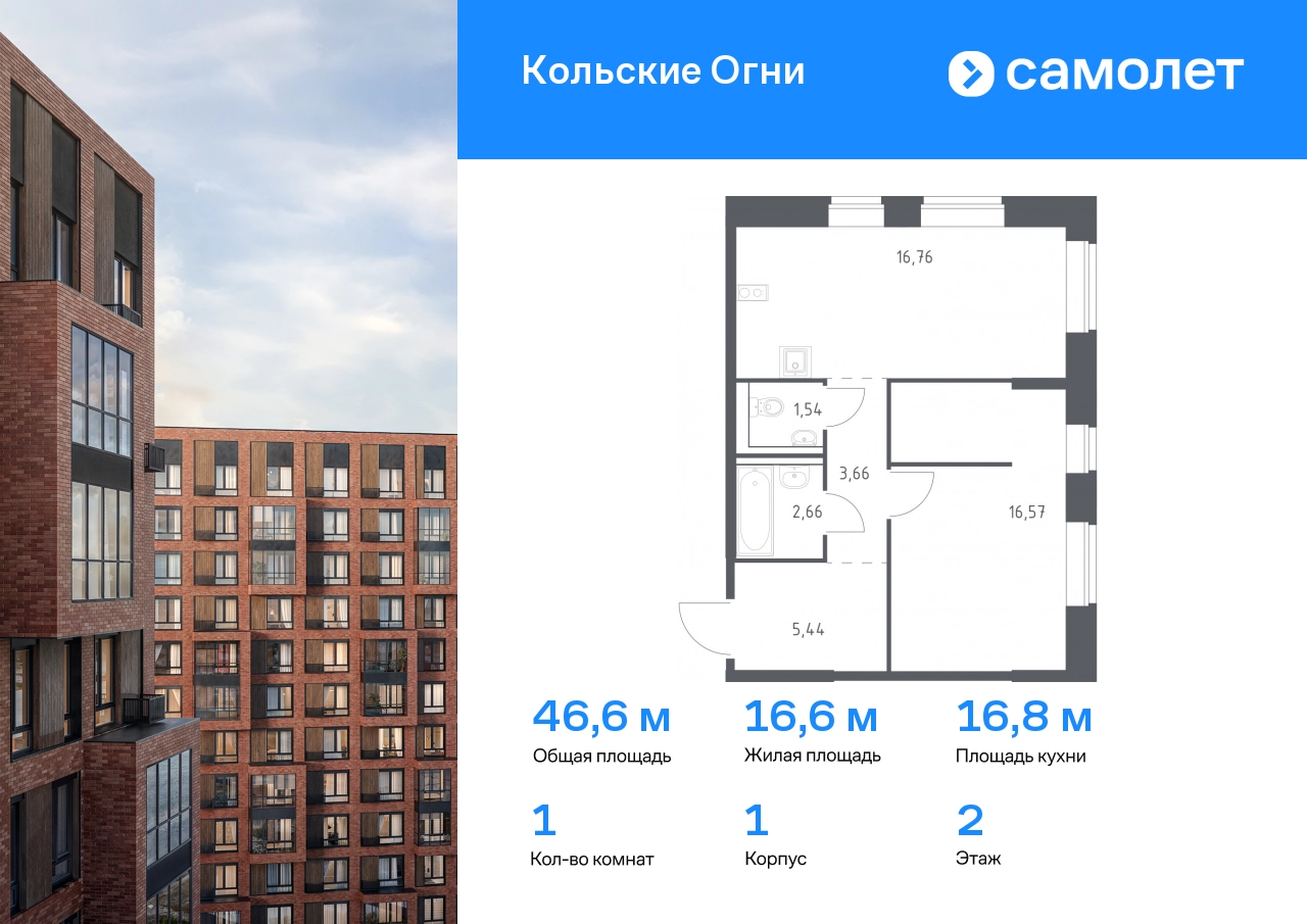 Строим кварталы для жизни с заботой о будущем. Предлагается 1-комнатная квартира комфорт-класса 46,63 кв.м в корпусе 1 на 2 этаже, в ЖК «Кольские Огни» Квартира без отделки. Доступность опции «отделка» и возможность комплектации мебелью и декором уточняйте у застройщика. Приобрести квартиру возможно по специальным акциям от застройщика, с текущими условиями акций можно ознакомиться в блоке «Акций». Цена динамическая и может отличаться, уточняйте актуальность у застройщика. Жилой комплекс «Кольские Огни» будет построен в Мурманской области, в городе Кола. Путь до центра Мурманска будет быстрым — всего 25 минут на машине. Рядом — Поморская набережная, парк, тундровый сад и лес всего в 10 минутах пешком. На первых этажах домов откроются кофейни и магазины, фитнес-зал и салон красоты, аптека, пункты выдачи заказов. Рядом с жилым комплексом работают детский сад, спортивная школа с бассейном и ФОК. Во дворе — озеленение, спортивные площадки, ремонт велосипедов, догхабы. Еще на территории квартала построим паркинг с зарядкой для электромобилей. Корпуса высотой 9–12 этажей и 14–17-этажные башни украшают деревянные панели. На входе в подъезды не будет ступеней и высоких порогов. После прогулки велосипеды и коляски можно оставить в местах хранения. Продуманные планировки от небольших студий до просторных 4-комнатных квартир. Отделка на выбор: готовая, White Box или вариант без нее. Выбирайте варианты без отделки, если хотите реализовать собственные решения.#yan19-2r1706683#О застройщике