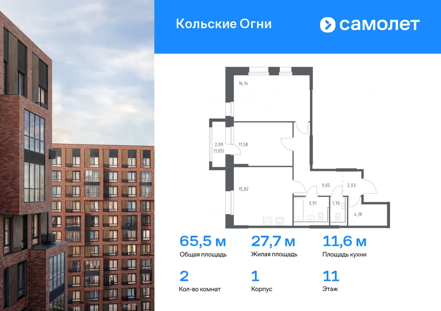 Строим кварталы для жизни с заботой о будущем. Предлагается 2-комнатная квартира комфорт-класса 65,46 кв.м в корпусе 1 на 11 этаже, в ЖК «Кольские Огни» Квартира без отделки. Доступность опции «отделка» и возможность комплектации мебелью и декором уточняйте у застройщика. Приобрести квартиру возможно по специальным акциям от застройщика, с текущими условиями акций можно ознакомиться в блоке «Акций». Цена динамическая и может отличаться, уточняйте актуальность у застройщика. Жилой комплекс «Кольские Огни» будет построен в Мурманской области, в городе Кола. Путь до центра Мурманска будет быстрым — всего 25 минут на машине. Рядом — Поморская набережная, парк, тундровый сад и лес всего в 10 минутах пешком. На первых этажах домов откроются кофейни и магазины, фитнес-зал и салон красоты, аптека, пункты выдачи заказов. Рядом с жилым комплексом работают детский сад, спортивная школа с бассейном и ФОК. Во дворе — озеленение, спортивные площадки, ремонт велосипедов, догхабы. Еще на территории квартала построим паркинг с зарядкой для электромобилей. Корпуса высотой 9–12 этажей и 14–17-этажные башни украшают деревянные панели. На входе в подъезды не будет ступеней и высоких порогов. После прогулки велосипеды и коляски можно оставить в местах хранения. Продуманные планировки от небольших студий до просторных 4-комнатных квартир. Отделка на выбор: готовая, White Box или вариант без нее. Выбирайте варианты без отделки, если хотите реализовать собственные решения.#yan19-2r1706706#О застройщике