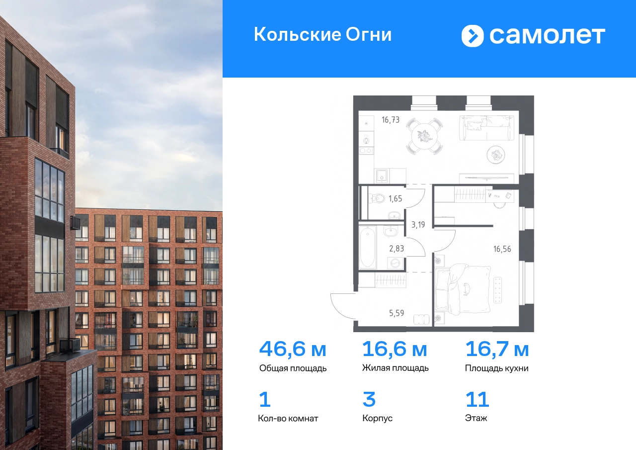 Строим кварталы для жизни с заботой о будущем. Предлагается 1-комнатная квартира комфорт-класса 46,55 кв.м в корпусе 3 на 11 этаже, в ЖК «Кольские Огни» Квартира без отделки. Доступность опции «отделка» и возможность комплектации мебелью и декором уточняйте у застройщика. Приобрести квартиру возможно по специальным акциям от застройщика, с текущими условиями акций можно ознакомиться в блоке «Акций». Цена динамическая и может отличаться, уточняйте актуальность у застройщика. Жилой комплекс «Кольские Огни» будет построен в Мурманской области, в городе Кола. Путь до центра Мурманска будет быстрым — всего 25 минут на машине. Рядом — Поморская набережная, парк, тундровый сад и лес всего в 10 минутах пешком. На первых этажах домов откроются кофейни и магазины, фитнес-зал и салон красоты, аптека, пункты выдачи заказов. Рядом с жилым комплексом работают детский сад, спортивная школа с бассейном и ФОК. Во дворе — озеленение, спортивные площадки, ремонт велосипедов, догхабы. Еще на территории квартала построим паркинг с зарядкой для электромобилей. Корпуса высотой 9–12 этажей и 14–17-этажные башни украшают деревянные панели. На входе в подъезды не будет ступеней и высоких порогов. После прогулки велосипеды и коляски можно оставить в местах хранения. Продуманные планировки от небольших студий до просторных 4-комнатных квартир. Отделка на выбор: готовая, White Box или вариант без нее. Выбирайте варианты без отделки, если хотите реализовать собственные решения.#yan19-2r1706725#О застройщике