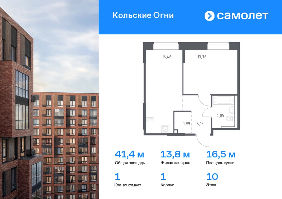Строим кварталы для жизни с заботой о будущем. Предлагается 1-комнатная квартира комфорт-класса 41,41 кв.м в корпусе 1 на 10 этаже, в ЖК «Кольские Огни» Квартира без отделки. Доступность опции «отделка» и возможность комплектации мебелью и декором уточняйте у застройщика. Приобрести квартиру возможно по специальным акциям от застройщика, с текущими условиями акций можно ознакомиться в блоке «Акций». Цена динамическая и может отличаться, уточняйте актуальность у застройщика. Жилой комплекс «Кольские Огни» будет построен в Мурманской области, в городе Кола. Путь до центра Мурманска будет быстрым — всего 25 минут на машине. Рядом — Поморская набережная, парк, тундровый сад и лес всего в 10 минутах пешком. На первых этажах домов откроются кофейни и магазины, фитнес-зал и салон красоты, аптека, пункты выдачи заказов. Рядом с жилым комплексом работают детский сад, спортивная школа с бассейном и ФОК. Во дворе — озеленение, спортивные площадки, ремонт велосипедов, догхабы. Еще на территории квартала построим паркинг с зарядкой для электромобилей. Корпуса высотой 9–12 этажей и 14–17-этажные башни украшают деревянные панели. На входе в подъезды не будет ступеней и высоких порогов. После прогулки велосипеды и коляски можно оставить в местах хранения. Продуманные планировки от небольших студий до просторных 4-комнатных квартир. Отделка на выбор: готовая, White Box или вариант без нее. Выбирайте варианты без отделки, если хотите реализовать собственные решения.#yan19-2r1743724#О застройщике