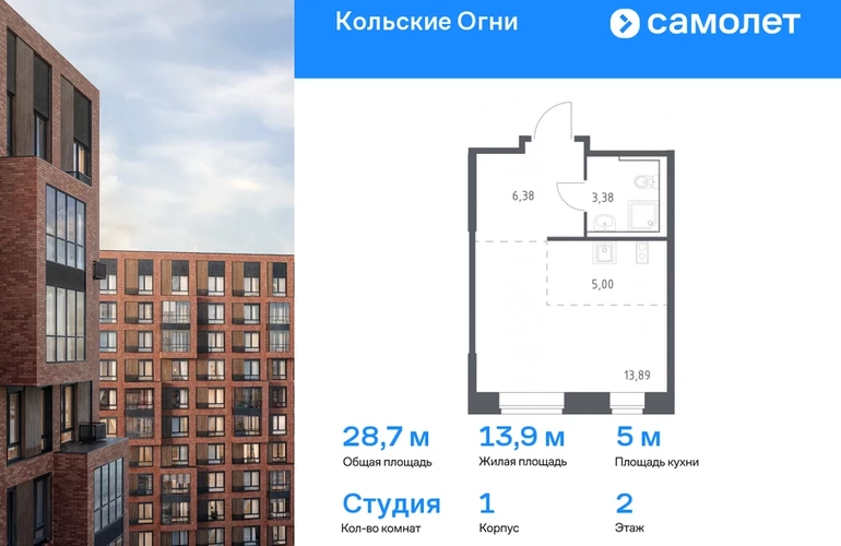 Строим кварталы для жизни с заботой о будущем. Предлагается квартира студия комфорт-класса 28,65 кв.м в корпусе 1 на 2 этаже, в ЖК «Кольские Огни» Квартира без отделки. Доступность опции «отделка» и возможность комплектации мебелью и декором уточняйте у застройщика. Приобрести квартиру возможно по специальным акциям от застройщика, с текущими условиями акций можно ознакомиться в блоке «Акций». Цена динамическая и может отличаться, уточняйте актуальность у застройщика. Жилой комплекс «Кольские Огни» будет построен в Мурманской области, в городе Кола. Путь до центра Мурманска будет быстрым — всего 25 минут на машине. Рядом — Поморская набережная, парк, тундровый сад и лес всего в 10 минутах пешком. На первых этажах домов откроются кофейни и магазины, фитнес-зал и салон красоты, аптека, пункты выдачи заказов. Рядом с жилым комплексом работают детский сад, спортивная школа с бассейном и ФОК. Во дворе — озеленение, спортивные площадки, ремонт велосипедов, догхабы. Еще на территории квартала построим паркинг с зарядкой для электромобилей. Корпуса высотой 9–12 этажей и 14–17-этажные башни украшают деревянные панели. На входе в подъезды не будет ступеней и высоких порогов. После прогулки велосипеды и коляски можно оставить в местах хранения. Продуманные планировки от небольших студий до просторных 4-комнатных квартир. Отделка на выбор: готовая, White Box или вариант без нее. Выбирайте варианты без отделки, если хотите реализовать собственные решения.#yan19-2r1768039#О застройщике