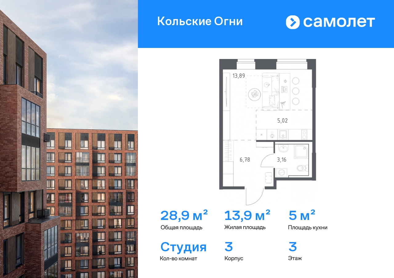Строим кварталы для жизни с заботой о будущем. Предлагается квартира студия комфорт-класса 28,85 кв.м в корпусе 3 на 3 этаже, в ЖК «Кольские Огни» Квартира без отделки. Доступность опции «отделка» и возможность комплектации мебелью и декором уточняйте у застройщика. Приобрести квартиру возможно по специальным акциям от застройщика, с текущими условиями акций можно ознакомиться в блоке «Акций». Цена динамическая и может отличаться, уточняйте актуальность у застройщика. Жилой комплекс «Кольские Огни» будет построен в Мурманской области, в городе Кола. Путь до центра Мурманска будет быстрым — всего 25 минут на машине. Рядом — Поморская набережная, парк, тундровый сад и лес всего в 10 минутах пешком. На первых этажах домов откроются кофейни и магазины, фитнес-зал и салон красоты, аптека, пункты выдачи заказов. Рядом с жилым комплексом работают детский сад, спортивная школа с бассейном и ФОК. Во дворе — озеленение, спортивные площадки, ремонт велосипедов, догхабы. Еще на территории квартала построим паркинг с зарядкой для электромобилей. Корпуса высотой 9–12 этажей и 14–17-этажные башни украшают деревянные панели. На входе в подъезды не будет ступеней и высоких порогов. После прогулки велосипеды и коляски можно оставить в местах хранения. Продуманные планировки от небольших студий до просторных 4-комнатных квартир. Отделка на выбор: готовая, White Box или вариант без нее. Выбирайте варианты без отделки, если хотите реализовать собственные решения.#yan19-2r1819772#О застройщике