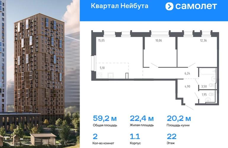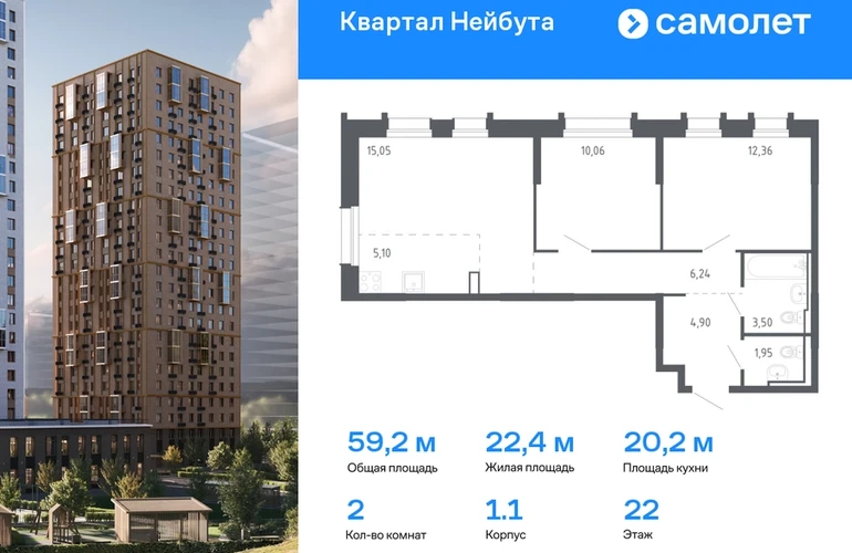Строим кварталы для жизни с заботой о будущем. Предлагается 2-комнатная квартира комфорт-класса 59,16 кв.м в корпусе 1.1 на 22 этаже, в ЖК «Квартал Нейбута» Квартира с чистовой отделкой. Доступность дополнительных опций уточняйте у застройщика. Приобрести квартиру возможно по специальным акциям от застройщика, с текущими условиями акций можно ознакомиться в блоке «Акций». Цена динамическая и может отличаться, уточняйте актуальность у застройщика. «Квартал Нейбута» находится в Ленинском районе Владивостока. Дорога до центра города, морского и ж/д вокзалов займет 30 минут на машине или 45 минут на автобусе. Международный аэропорт находится в часе езды от дома. Скоро в квартале будет удобный выезд, откуда можно попасть на трассу Патрокл — Седанка — Де-Фриз — Новый. 26-этажные дома с отделкой золотистых и благородных коричневых оттенков гармонично впишутся в живописный дальневосточный пейзаж. Объем фасадам придают витражные балконы. Закрытые дворы без машин — маленький мир, вдохновленный природой Приморского края. Во дворе найдется занятие для всех жителей квартала. Взрослые смогут устраивать тренировки в спортивных зонах, дети будут веселиться на игровых площадках. А для четвероногих питомцев мы предусмотрели специальные зоны для выгула. Мы отказались от ступенек и порогов у входов в подъезд. Оставить коляску или велосипед можно на первом этаже, в специальном помещении. На подземном этаже предусмотрены кладовые.#yan19-2r1588447#О застройщике