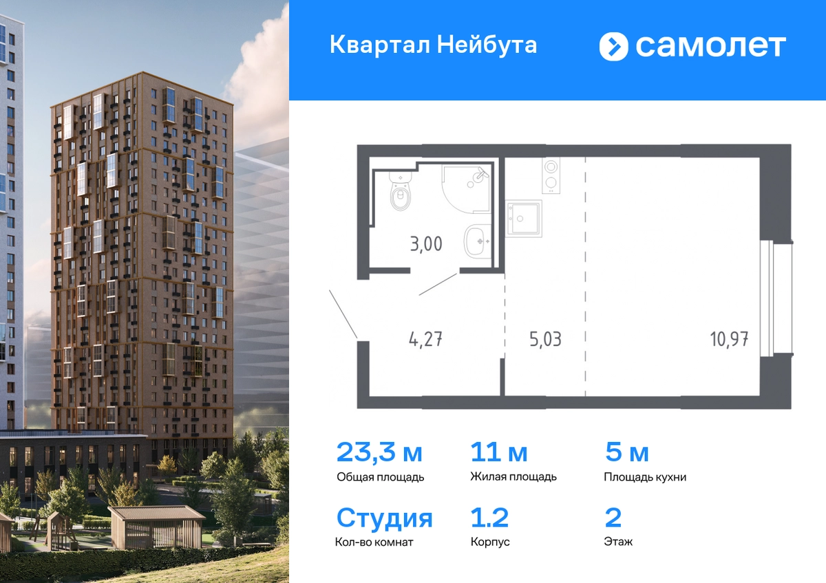 Строим кварталы для жизни с заботой о будущем. Предлагается квартира студия комфорт-класса 23,27 кв.м в корпусе 1.2 на 2 этаже, в ЖК «Квартал Нейбута» Квартира с чистовой отделкой. Доступность дополнительных опций уточняйте у застройщика. Приобрести квартиру возможно по специальным акциям от застройщика, с текущими условиями акций можно ознакомиться в блоке «Акций». Цена динамическая и может отличаться, уточняйте актуальность у застройщика. «Квартал Нейбута» находится в Ленинском районе Владивостока. Дорога до центра города, морского и ж/д вокзалов займет 30 минут на машине или 45 минут на автобусе. Международный аэропорт находится в часе езды от дома. Скоро в квартале будет удобный выезд, откуда можно попасть на трассу Патрокл — Седанка — Де-Фриз — Новый. 26-этажные дома с отделкой золотистых и благородных коричневых оттенков гармонично впишутся в живописный дальневосточный пейзаж. Объем фасадам придают витражные балконы. Закрытые дворы без машин — маленький мир, вдохновленный природой Приморского края. Во дворе найдется занятие для всех жителей квартала. Взрослые смогут устраивать тренировки в спортивных зонах, дети будут веселиться на игровых площадках. А для четвероногих питомцев мы предусмотрели специальные зоны для выгула. Мы отказались от ступенек и порогов у входов в подъезд. Оставить коляску или велосипед можно на первом этаже, в специальном помещении. На подземном этаже предусмотрены кладовые.#yan19-2r1588475#О застройщике