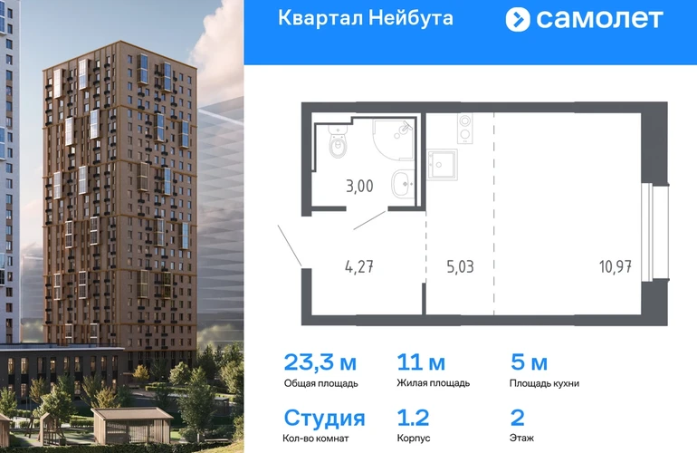 Строим кварталы для жизни с заботой о будущем. Предлагается квартира студия комфорт-класса 23,27 кв.м в корпусе 1.2 на 2 этаже, в ЖК «Квартал Нейбута» Квартира с чистовой отделкой. Доступность дополнительных опций уточняйте у застройщика. Приобрести квартиру возможно по специальным акциям от застройщика, с текущими условиями акций можно ознакомиться в блоке «Акций». Цена динамическая и может отличаться, уточняйте актуальность у застройщика. «Квартал Нейбута» находится в Ленинском районе Владивостока. Дорога до центра города, морского и ж/д вокзалов займет 30 минут на машине или 45 минут на автобусе. Международный аэропорт находится в часе езды от дома. Скоро в квартале будет удобный выезд, откуда можно попасть на трассу Патрокл — Седанка — Де-Фриз — Новый. 26-этажные дома с отделкой золотистых и благородных коричневых оттенков гармонично впишутся в живописный дальневосточный пейзаж. Объем фасадам придают витражные балконы. Закрытые дворы без машин — маленький мир, вдохновленный природой Приморского края. Во дворе найдется занятие для всех жителей квартала. Взрослые смогут устраивать тренировки в спортивных зонах, дети будут веселиться на игровых площадках. А для четвероногих питомцев мы предусмотрели специальные зоны для выгула. Мы отказались от ступенек и порогов у входов в подъезд. Оставить коляску или велосипед можно на первом этаже, в специальном помещении. На подземном этаже предусмотрены кладовые.#yan19-2r1588475#О застройщике