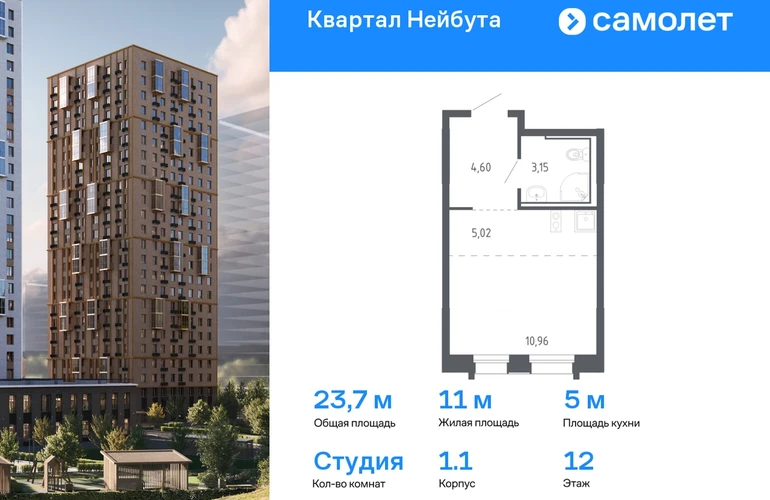 Предлагается квартира студия комфорт-класса 23,73 кв.м в корпусе 1.1 на 12 этаже, в ЖК «Квартал Нейбута» Квартира с чистовой отделкой. Доступность дополнительных опций уточняйте у застройщика. Приобрести квартиру возможно по специальным акциям от застройщика, с текущими условиями акций можно ознакомиться в блоке “Акций”. Цена динамическая и может отличаться, уточняйте актуальность у застройщика. В новом «Квартале Нейбута» захочется освободить галерею телефона — чтобы вместить коллекцию по-настоящему захватывающих кадров. В объектив вашей камеры попадут зеленые сопки, бескрайнее небо и другие красоты Приморского края. Квартал находится в одном из районов Владивостока, откуда легко добраться в любую точку города. Дорога до центра города, морского и ж/д вокзалов займет 30 минут на машине или 45 минут на автобусе. Планировать отпуск тоже удобно — международный аэропорт находится в часе езды от дома. Скоро в квартале будет удобный выезд на улицы Нейбута и Фадеева, откуда можно попасть на трассу Патрокл — Седанка — Де-Фриз — Новый. А к старту первой очереди будет готов северный заезд с твердым покрытием. В квартале можно выйти из дома и оказаться в большом парке с экотропами и прогулочными зонами. Выходите на пробежку или на познавательную прогулку с детьми — можно долго рассматривать растения и искать их названия в интернете. Побродите по тропам для терренкура и обязательно побывайте на смотровых площадках — ваша коллекция впечатлений точно пополнится. Вечером отправляйтесь полюбоваться на вантовый мост в свете огней. Вид на него откроется из бухты Золотой Рог, дорога до которой займет 20 минут на авто. Чтобы решать все повседневные дела, даже не обязательно далеко уходить от дома. На первых этажах корпусов откроются салоны красоты, магазины, пункты выдачи и кафе. Забегайте за утренним латте, новой прической или продуктами к обеду. Юным жителям квартала тоже не придется долго шагать по своим важным делам. Рядом с кварталом находятся 3 детских сада, общеобразовательная и школа искусств и развивающий центр «Пчелкин дом». А скоро недалеко от проекта появится еще одна школа на 1100 учеников. Ее планируют строить в 2026 году. 26-этажные дома с отделкой золотистых и благородных коричневых оттенков гармонично впишутся в живописный дальневосточный пейзаж. Объем фасадам придают витражные балконы, с которых открываются виды на Уссурийский залив. Закрытые дворы без машин — маленький мир, вдохновленный природой Приморского края. Стены домов украшают дальневосточные лианы, крыши — пышные ковры из трав. Еще мы установим дождевые сады, которые скроют последствия даже самого сильного ливня. Во дворе найдется интересное занятие для всех жителей квартала. Взрослые смогут устраивать тренировки на свежем воздухе в спортивных зонах, дети будут целый день веселиться на игровых площадках. А для четвероногих питомцев мы предусмотрели специальные зоны для выгула. Возвращайтесь домой из отпуска с чемоданом сувениров или самокатом из парка. Мы отказались от ступенек и порогов у входов в подъезд, поэтому путь будет легким и удобным. Оставить коляску или велосипед можно на первом этаже, в специальном помещении. А бабушкины закрутки и сноуборд можно хранить в кладовых на подземном этаже. Среди разнообразных планировок вы наверняка найдете квартиру ме