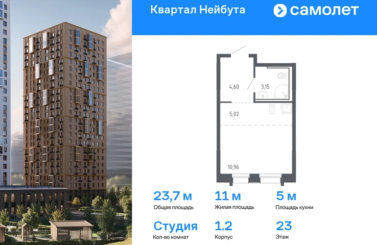 Строим кварталы для жизни с заботой о будущем. Предлагается квартира студия комфорт-класса 23,73 кв.м в корпусе 1.2 на 23 этаже, в ЖК «Квартал Нейбута» Квартира с чистовой отделкой. Доступность дополнительных опций уточняйте у застройщика. Приобрести квартиру возможно по специальным акциям от застройщика, с текущими условиями акций можно ознакомиться в блоке «Акций». Цена динамическая и может отличаться, уточняйте актуальность у застройщика. «Квартал Нейбута» находится в Ленинском районе Владивостока. Дорога до центра города, морского и ж/д вокзалов займет 30 минут на машине или 45 минут на автобусе. Международный аэропорт находится в часе езды от дома. Скоро в квартале будет удобный выезд, откуда можно попасть на трассу Патрокл — Седанка — Де-Фриз — Новый. 26-этажные дома с отделкой золотистых и благородных коричневых оттенков гармонично впишутся в живописный дальневосточный пейзаж. Объем фасадам придают витражные балконы. Закрытые дворы без машин — маленький мир, вдохновленный природой Приморского края. Во дворе найдется занятие для всех жителей квартала. Взрослые смогут устраивать тренировки в спортивных зонах, дети будут веселиться на игровых площадках. А для четвероногих питомцев мы предусмотрели специальные зоны для выгула. Мы отказались от ступенек и порогов у входов в подъезд. Оставить коляску или велосипед можно на первом этаже, в специальном помещении. На подземном этаже предусмотрены кладовые.#yan19-2r1623113#О застройщике
