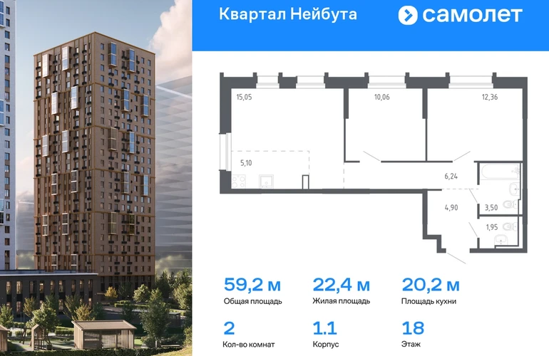 Строим кварталы для жизни с заботой о будущем. Предлагается 2-комнатная квартира комфорт-класса 59,16 кв.м в корпусе 1.1 на 18 этаже, в ЖК «Квартал Нейбута» Квартира с чистовой отделкой. Доступность дополнительных опций уточняйте у застройщика. Приобрести квартиру возможно по специальным акциям от застройщика, с текущими условиями акций можно ознакомиться в блоке «Акций». Цена динамическая и может отличаться, уточняйте актуальность у застройщика. «Квартал Нейбута» находится в Ленинском районе Владивостока. Дорога до центра города, морского и ж/д вокзалов займет 30 минут на машине или 45 минут на автобусе. Международный аэропорт находится в часе езды от дома. Скоро в квартале будет удобный выезд, откуда можно попасть на трассу Патрокл — Седанка — Де-Фриз — Новый. 26-этажные дома с отделкой золотистых и благородных коричневых оттенков гармонично впишутся в живописный дальневосточный пейзаж. Объем фасадам придают витражные балконы. Закрытые дворы без машин — маленький мир, вдохновленный природой Приморского края. Во дворе найдется занятие для всех жителей квартала. Взрослые смогут устраивать тренировки в спортивных зонах, дети будут веселиться на игровых площадках. А для четвероногих питомцев мы предусмотрели специальные зоны для выгула. Мы отказались от ступенек и порогов у входов в подъезд. Оставить коляску или велосипед можно на первом этаже, в специальном помещении. На подземном этаже предусмотрены кладовые.#yan19-2r1691915#О застройщике