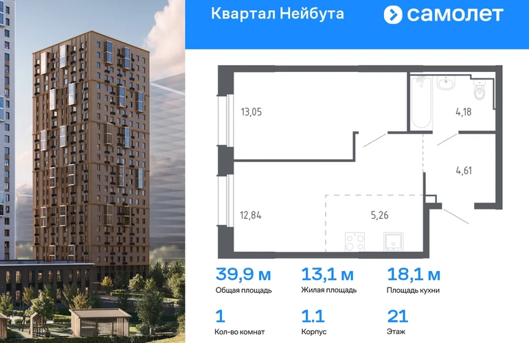 Строим кварталы для жизни с заботой о будущем. Предлагается 1-комнатная квартира комфорт-класса 39,94 кв.м в корпусе 1.1 на 21 этаже, в ЖК «Квартал Нейбута» Квартира с чистовой отделкой. Доступность дополнительных опций уточняйте у застройщика. Приобрести квартиру возможно по специальным акциям от застройщика, с текущими условиями акций можно ознакомиться в блоке «Акций». Цена динамическая и может отличаться, уточняйте актуальность у застройщика. «Квартал Нейбута» находится в Ленинском районе Владивостока. Дорога до центра города, морского и ж/д вокзалов займет 30 минут на машине или 45 минут на автобусе. Международный аэропорт находится в часе езды от дома. Скоро в квартале будет удобный выезд, откуда можно попасть на трассу Патрокл — Седанка — Де-Фриз — Новый. 26-этажные дома с отделкой золотистых и благородных коричневых оттенков гармонично впишутся в живописный дальневосточный пейзаж. Объем фасадам придают витражные балконы. Закрытые дворы без машин — маленький мир, вдохновленный природой Приморского края. Во дворе найдется занятие для всех жителей квартала. Взрослые смогут устраивать тренировки в спортивных зонах, дети будут веселиться на игровых площадках. А для четвероногих питомцев мы предусмотрели специальные зоны для выгула. Мы отказались от ступенек и порогов у входов в подъезд. Оставить коляску или велосипед можно на первом этаже, в специальном помещении. На подземном этаже предусмотрены кладовые.#yan19-2r1691925#О застройщике