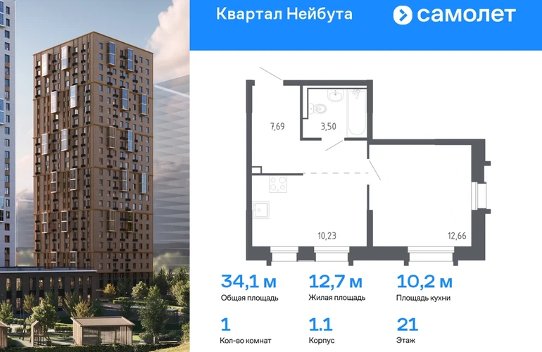 Предлагается 1-комнатная квартира комфорт-класса 34,08 кв.м в корпусе 1.1 на 21 этаже, в ЖК «Квартал Нейбута» Квартира с чистовой отделкой. Доступность дополнительных опций уточняйте у застройщика. Приобрести квартиру возможно по специальным акциям от застройщика, с текущими условиями акций можно ознакомиться в блоке “Акций”. Цена динамическая и может отличаться, уточняйте актуальность у застройщика. В новом «Квартале Нейбута» захочется освободить галерею телефона — чтобы вместить коллекцию по-настоящему захватывающих кадров. В объектив вашей камеры попадут зеленые сопки, бескрайнее небо и другие красоты Приморского края. Квартал находится в одном из районов Владивостока, откуда легко добраться в любую точку города. Дорога до центра города, морского и ж/д вокзалов займет 30 минут на машине или 45 минут на автобусе. Планировать отпуск тоже удобно — международный аэропорт находится в часе езды от дома. Скоро в квартале будет удобный выезд на улицы Нейбута и Фадеева, откуда можно попасть на трассу Патрокл — Седанка — Де-Фриз — Новый. А к старту первой очереди будет готов северный заезд с твердым покрытием. В квартале можно выйти из дома и оказаться в большом парке с экотропами и прогулочными зонами. Выходите на пробежку или на познавательную прогулку с детьми — можно долго рассматривать растения и искать их названия в интернете. Побродите по тропам для терренкура и обязательно побывайте на смотровых площадках — ваша коллекция впечатлений точно пополнится. Вечером отправляйтесь полюбоваться на вантовый мост в свете огней. Вид на него откроется из бухты Золотой Рог, дорога до которой займет 20 минут на авто. Чтобы решать все повседневные дела, даже не обязательно далеко уходить от дома. На первых этажах корпусов откроются салоны красоты, магазины, пункты выдачи и кафе. Забегайте за утренним латте, новой прической или продуктами к обеду. Юным жителям квартала тоже не придется долго шагать по своим важным делам. Рядом с кварталом находятся 3 детских сада, общеобразовательная и школа искусств и развивающий центр «Пчелкин дом». А скоро недалеко от проекта появится еще одна школа на 1100 учеников. Ее планируют строить в 2026 году. 26-этажные дома с отделкой золотистых и благородных коричневых оттенков гармонично впишутся в живописный дальневосточный пейзаж. Объем фасадам придают витражные балконы, с которых открываются виды на Уссурийский залив. Закрытые дворы без машин — маленький мир, вдохновленный природой Приморского края. Стены домов украшают дальневосточные лианы, крыши — пышные ковры из трав. Еще мы установим дождевые сады, которые скроют последствия даже самого сильного ливня. Во дворе найдется интересное занятие для всех жителей квартала. Взрослые смогут устраивать тренировки на свежем воздухе в спортивных зонах, дети будут целый день веселиться на игровых площадках. А для четвероногих питомцев мы предусмотрели специальные зоны для выгула. Возвращайтесь домой из отпуска с чемоданом сувениров или самокатом из парка. Мы отказались от ступенек и порогов у входов в подъезд, поэтому путь будет легким и удобным. Оставить коляску или велосипед можно на первом этаже, в специальном помещении. А бабушкины закрутки и сноуборд можно хранить в кладовых на подземном этаже. Среди разнообразных планировок вы наверняка найдете квартир