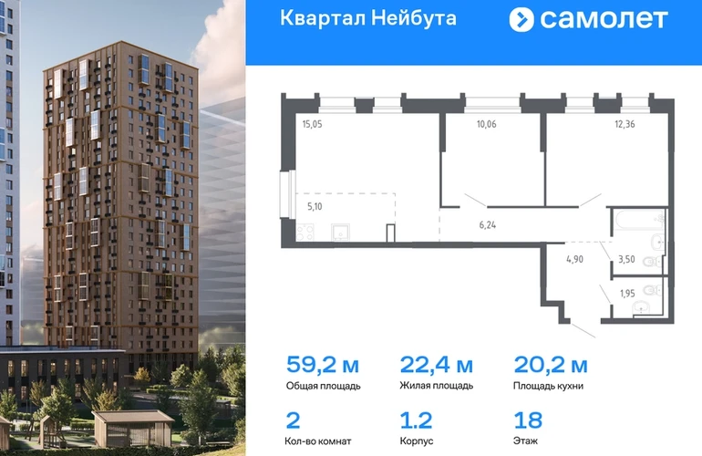 Строим кварталы для жизни с заботой о будущем. Предлагается 2-комнатная квартира комфорт-класса 59,16 кв.м в корпусе 1.2 на 18 этаже, в ЖК «Квартал Нейбута» Квартира с чистовой отделкой. Доступность дополнительных опций уточняйте у застройщика. Приобрести квартиру возможно по специальным акциям от застройщика, с текущими условиями акций можно ознакомиться в блоке «Акций». Цена динамическая и может отличаться, уточняйте актуальность у застройщика. «Квартал Нейбута» находится в Ленинском районе Владивостока. Дорога до центра города, морского и ж/д вокзалов займет 30 минут на машине или 45 минут на автобусе. Международный аэропорт находится в часе езды от дома. Скоро в квартале будет удобный выезд, откуда можно попасть на трассу Патрокл — Седанка — Де-Фриз — Новый. 26-этажные дома с отделкой золотистых и благородных коричневых оттенков гармонично впишутся в живописный дальневосточный пейзаж. Объем фасадам придают витражные балконы. Закрытые дворы без машин — маленький мир, вдохновленный природой Приморского края. Во дворе найдется занятие для всех жителей квартала. Взрослые смогут устраивать тренировки в спортивных зонах, дети будут веселиться на игровых площадках. А для четвероногих питомцев мы предусмотрели специальные зоны для выгула. Мы отказались от ступенек и порогов у входов в подъезд. Оставить коляску или велосипед можно на первом этаже, в специальном помещении. На подземном этаже предусмотрены кладовые.#yan19-2r1691949#О застройщике