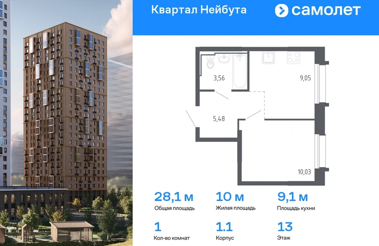 Предлагается 1-комнатная квартира комфорт-класса 28,12 кв.м в корпусе 1.1 на 13 этаже, в ЖК «Квартал Нейбута» Квартира с чистовой отделкой. Доступность дополнительных опций уточняйте у застройщика. Приобрести квартиру возможно по специальным акциям от застройщика, с текущими условиями акций можно ознакомиться в блоке «Акций». Цена динамическая и может отличаться, уточняйте актуальность у застройщика. В новом «Квартале Нейбута» захочется освободить галерею телефона — чтобы вместить коллекцию по-настоящему захватывающих кадров. В объектив вашей камеры попадут зеленые сопки, бескрайнее небо и другие красоты Приморского края. Квартал находится в одном из районов Владивостока, откуда легко добраться в любую точку города. Дорога до центра города, морского и ж/д вокзалов займет 30 минут на машине или 45 минут на автобусе. Планировать отпуск тоже удобно — международный аэропорт находится в часе езды от дома. Скоро в квартале будет удобный выезд на улицы Нейбута и Фадеева, откуда можно попасть на трассу Патрокл — Седанка — Де-Фриз — Новый. А к старту первой очереди будет готов северный заезд с твердым покрытием. В квартале можно выйти из дома и оказаться в большом парке с экотропами и прогулочными зонами. Выходите на пробежку или на познавательную прогулку с детьми — можно долго рассматривать растения и искать их названия в интернете. Побродите по тропам для терренкура и обязательно побывайте на смотровых площадках — ваша коллекция впечатлений точно пополнится. Вечером отправляйтесь полюбоваться на вантовый мост в свете огней. Вид на него откроется из бухты Золотой Рог, дорога до которой займет 20 минут на авто. Чтобы решать все повседневные дела, даже не обязательно далеко уходить от дома. На первых этажах корпусов откроются салоны красоты, магазины, пункты выдачи и кафе. Забегайте за утренним латте, новой прической или продуктами к обеду. Юным жителям квартала тоже не придется долго шагать по своим важным делам. Рядом с кварталом находятся 3 детских сада, общеобразовательная и школа искусств и развивающий центр «Пчелкин дом». А скоро недалеко от проекта появится еще одна школа на 1100 учеников. Ее планируют строить в 2026 году. 26-этажные дома с отделкой золотистых и благородных коричневых оттенков гармонично впишутся в живописный дальневосточный пейзаж. Объем фасадам придают витражные балконы, с которых открываются виды на Уссурийский залив. Закрытые дворы без машин — маленький мир, вдохновленный природой Приморского края. Стены домов украшают дальневосточные лианы, крыши — пышные ковры из трав. Еще мы установим дождевые сады, которые скроют последствия даже самого сильного ливня. Во дворе найдется интересное занятие для всех жителей квартала. Взрослые смогут устраивать тренировки на свежем воздухе в спортивных зонах, дети будут целый день веселиться на игровых площадках. А для четвероногих питомцев мы предусмотрели специальные зоны для выгула. Возвращайтесь домой из отпуска с чемоданом сувениров или самокатом из парка. Мы отказались от ступенек и порогов у входов в подъезд, поэтому путь будет легким и удобным. Оставить коляску или велосипед можно на первом этаже, в специальном помещении. А бабушкины закрутки и сноуборд можно хранить в кладовых на подземном этаже. Среди разнообразных планировок вы наверняка найдете квартиру
