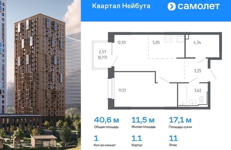 Предлагается 1-комнатная квартира комфорт-класса 40,57 кв.м в корпусе 1.1 на 11 этаже, в ЖК «Квартал Нейбута» Квартира с чистовой отделкой. Доступность дополнительных опций уточняйте у застройщика. Приобрести квартиру возможно по специальным акциям от застройщика, с текущими условиями акций можно ознакомиться в блоке “Акций”. Цена динамическая и может отличаться, уточняйте актуальность у застройщика. В новом «Квартале Нейбута» захочется освободить галерею телефона — чтобы вместить коллекцию по-настоящему захватывающих кадров. В объектив вашей камеры попадут зеленые сопки, бескрайнее небо и другие красоты Приморского края. Квартал находится в одном из районов Владивостока, откуда легко добраться в любую точку города. Дорога до центра города, морского и ж/д вокзалов займет 30 минут на машине или 45 минут на автобусе. Планировать отпуск тоже удобно — международный аэропорт находится в часе езды от дома. Скоро в квартале будет удобный выезд на улицы Нейбута и Фадеева, откуда можно попасть на трассу Патрокл — Седанка — Де-Фриз — Новый. А к старту первой очереди будет готов северный заезд с твердым покрытием. В квартале можно выйти из дома и оказаться в большом парке с экотропами и прогулочными зонами. Выходите на пробежку или на познавательную прогулку с детьми — можно долго рассматривать растения и искать их названия в интернете. Побродите по тропам для терренкура и обязательно побывайте на смотровых площадках — ваша коллекция впечатлений точно пополнится. Вечером отправляйтесь полюбоваться на вантовый мост в свете огней. Вид на него откроется из бухты Золотой Рог, дорога до которой займет 20 минут на авто. Чтобы решать все повседневные дела, даже не обязательно далеко уходить от дома. На первых этажах корпусов откроются салоны красоты, магазины, пункты выдачи и кафе. Забегайте за утренним латте, новой прической или продуктами к обеду. Юным жителям квартала тоже не придется долго шагать по своим важным делам. Рядом с кварталом находятся 3 детских сада, общеобразовательная и школа искусств и развивающий центр «Пчелкин дом». А скоро недалеко от проекта появится еще одна школа на 1100 учеников. Ее планируют строить в 2026 году. 26-этажные дома с отделкой золотистых и благородных коричневых оттенков гармонично впишутся в живописный дальневосточный пейзаж. Объем фасадам придают витражные балконы, с которых открываются виды на Уссурийский залив. Закрытые дворы без машин — маленький мир, вдохновленный природой Приморского края. Стены домов украшают дальневосточные лианы, крыши — пышные ковры из трав. Еще мы установим дождевые сады, которые скроют последствия даже самого сильного ливня. Во дворе найдется интересное занятие для всех жителей квартала. Взрослые смогут устраивать тренировки на свежем воздухе в спортивных зонах, дети будут целый день веселиться на игровых площадках. А для четвероногих питомцев мы предусмотрели специальные зоны для выгула. Возвращайтесь домой из отпуска с чемоданом сувениров или самокатом из парка. Мы отказались от ступенек и порогов у входов в подъезд, поэтому путь будет легким и удобным. Оставить коляску или велосипед можно на первом этаже, в специальном помещении. А бабушкины закрутки и сноуборд можно хранить в кладовых на подземном этаже. Среди разнообразных планировок вы наверняка найдете квартир