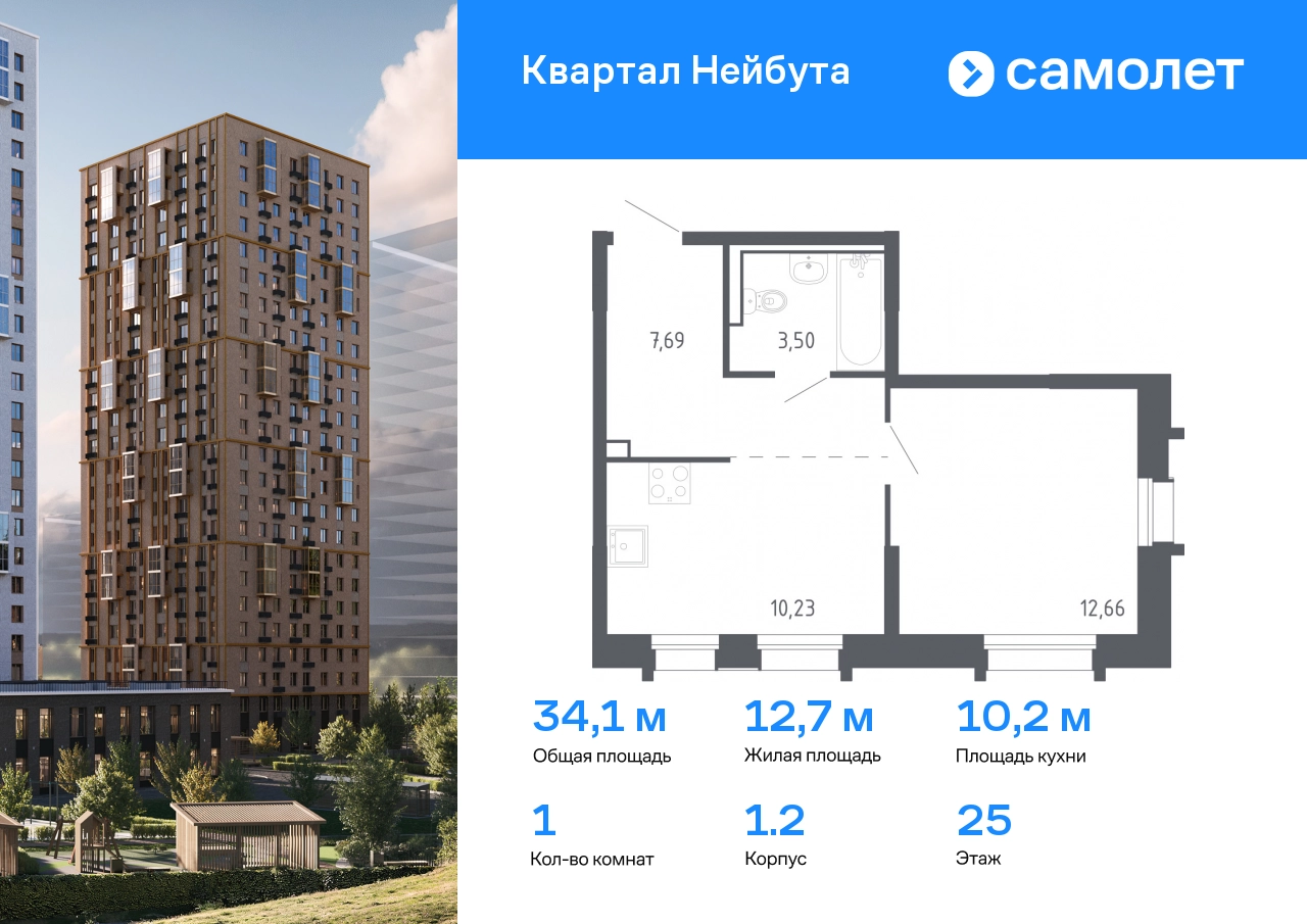 Строим кварталы для жизни с заботой о будущем. Предлагается 1-комнатная квартира комфорт-класса 34,08 кв.м в корпусе 1.2 на 25 этаже, в ЖК «Квартал Нейбута» Квартира с чистовой отделкой. Доступность дополнительных опций уточняйте у застройщика. Приобрести квартиру возможно по специальным акциям от застройщика, с текущими условиями акций можно ознакомиться в блоке «Акций». Цена динамическая и может отличаться, уточняйте актуальность у застройщика. «Квартал Нейбута» находится в Ленинском районе Владивостока. Дорога до центра города, морского и ж/д вокзалов займет 30 минут на машине или 45 минут на автобусе. Международный аэропорт находится в часе езды от дома. Скоро в квартале будет удобный выезд, откуда можно попасть на трассу Патрокл — Седанка — Де-Фриз — Новый. 26-этажные дома с отделкой золотистых и благородных коричневых оттенков гармонично впишутся в живописный дальневосточный пейзаж. Объем фасадам придают витражные балконы. Закрытые дворы без машин — маленький мир, вдохновленный природой Приморского края. Во дворе найдется занятие для всех жителей квартала. Взрослые смогут устраивать тренировки в спортивных зонах, дети будут веселиться на игровых площадках. А для четвероногих питомцев мы предусмотрели специальные зоны для выгула. Мы отказались от ступенек и порогов у входов в подъезд. Оставить коляску или велосипед можно на первом этаже, в специальном помещении. На подземном этаже предусмотрены кладовые.#yan19-2r1756731#О застройщике