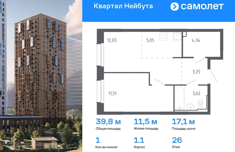 Строим кварталы для жизни с заботой о будущем. Предлагается 1-комнатная квартира комфорт-класса 39,8 кв.м в корпусе 1.1 на 26 этаже, в ЖК «Квартал Нейбута» Квартира с чистовой отделкой. Доступность дополнительных опций уточняйте у застройщика. Приобрести квартиру возможно по специальным акциям от застройщика, с текущими условиями акций можно ознакомиться в блоке «Акций». Цена динамическая и может отличаться, уточняйте актуальность у застройщика. «Квартал Нейбута» находится в Ленинском районе Владивостока. Дорога до центра города, морского и ж/д вокзалов займет 30 минут на машине или 45 минут на автобусе. Международный аэропорт находится в часе езды от дома. Скоро в квартале будет удобный выезд, откуда можно попасть на трассу Патрокл — Седанка — Де-Фриз — Новый. 26-этажные дома с отделкой золотистых и благородных коричневых оттенков гармонично впишутся в живописный дальневосточный пейзаж. Объем фасадам придают витражные балконы. Закрытые дворы без машин — маленький мир, вдохновленный природой Приморского края. Во дворе найдется занятие для всех жителей квартала. Взрослые смогут устраивать тренировки в спортивных зонах, дети будут веселиться на игровых площадках. А для четвероногих питомцев мы предусмотрели специальные зоны для выгула. Мы отказались от ступенек и порогов у входов в подъезд. Оставить коляску или велосипед можно на первом этаже, в специальном помещении. На подземном этаже предусмотрены кладовые.#yan19-2r1761255#О застройщике