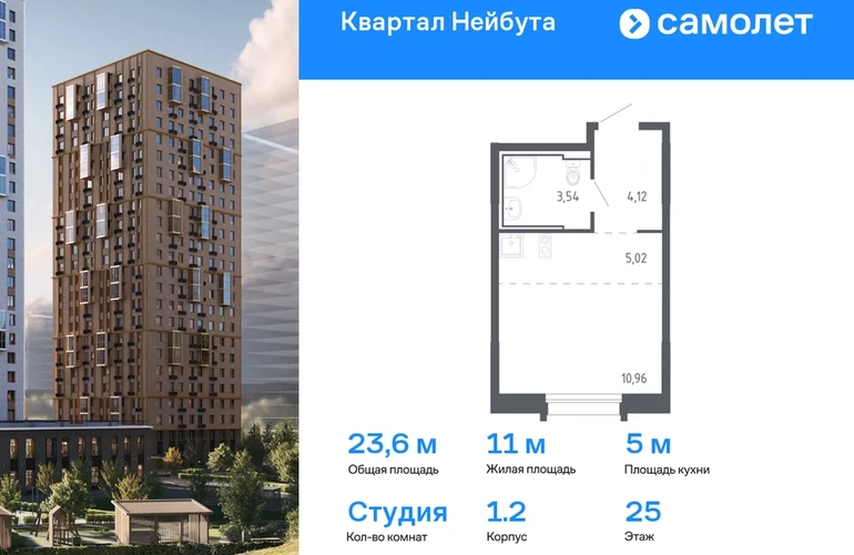 Строим кварталы для жизни с заботой о будущем. Предлагается квартира студия комфорт-класса 23,64 кв.м в корпусе 1.2 на 25 этаже, в ЖК «Квартал Нейбута» Квартира с чистовой отделкой. Доступность дополнительных опций уточняйте у застройщика. Приобрести квартиру возможно по специальным акциям от застройщика, с текущими условиями акций можно ознакомиться в блоке «Акций». Цена динамическая и может отличаться, уточняйте актуальность у застройщика. «Квартал Нейбута» находится в Ленинском районе Владивостока. Дорога до центра города, морского и ж/д вокзалов займет 30 минут на машине или 45 минут на автобусе. Международный аэропорт находится в часе езды от дома. Скоро в квартале будет удобный выезд, откуда можно попасть на трассу Патрокл — Седанка — Де-Фриз — Новый. 26-этажные дома с отделкой золотистых и благородных коричневых оттенков гармонично впишутся в живописный дальневосточный пейзаж. Объем фасадам придают витражные балконы. Закрытые дворы без машин — маленький мир, вдохновленный природой Приморского края. Во дворе найдется занятие для всех жителей квартала. Взрослые смогут устраивать тренировки в спортивных зонах, дети будут веселиться на игровых площадках. А для четвероногих питомцев мы предусмотрели специальные зоны для выгула. Мы отказались от ступенек и порогов у входов в подъезд. Оставить коляску или велосипед можно на первом этаже, в специальном помещении. На подземном этаже предусмотрены кладовые.#yan19-2r1761263#О застройщике