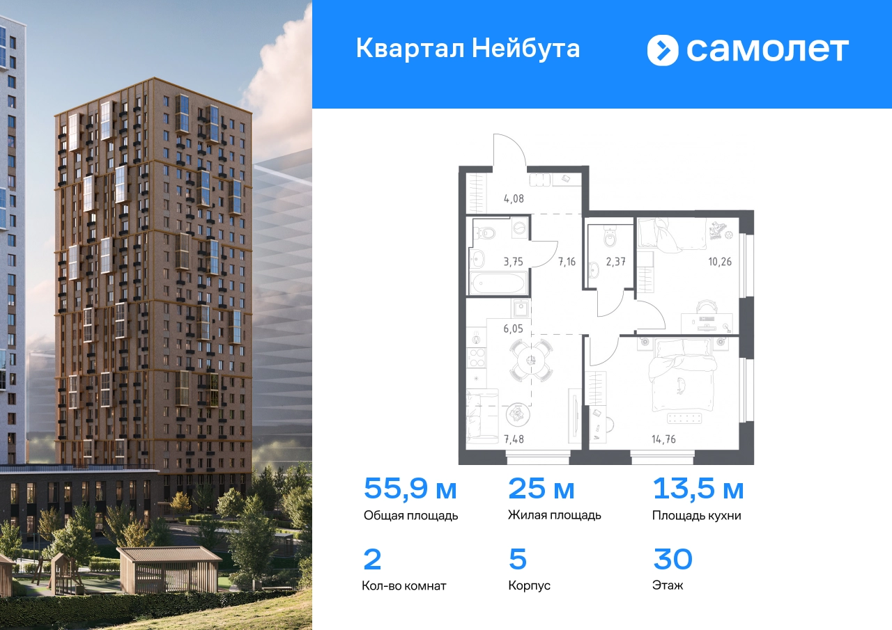 Предлагается 2-комнатная квартира комфорт-класса 55,91 кв.м в корпусе 5 на 30 этаже, в ЖК «Квартал Нейбута» Квартира с чистовой отделкой. Доступность дополнительных опций уточняйте у застройщика. Приобрести квартиру возможно по специальным акциям от застройщика, с текущими условиями акций можно ознакомиться в блоке “Акций”. Цена динамическая и может отличаться, уточняйте актуальность у застройщика. В новом «Квартале Нейбута» захочется освободить галерею телефона — чтобы вместить коллекцию по-настоящему захватывающих кадров. В объектив вашей камеры попадут зеленые сопки, бескрайнее небо и другие красоты Приморского края. Квартал находится в одном из районов Владивостока, откуда легко добраться в любую точку города. Дорога до центра города, морского и ж/д вокзалов займет 30 минут на машине или 45 минут на автобусе. Планировать отпуск тоже удобно — международный аэропорт находится в часе езды от дома. Скоро в квартале будет удобный выезд на улицы Нейбута и Фадеева, откуда можно попасть на трассу Патрокл — Седанка — Де-Фриз — Новый. А к старту первой очереди будет готов северный заезд с твердым покрытием. В квартале можно выйти из дома и оказаться в большом парке с экотропами и прогулочными зонами. Выходите на пробежку или на познавательную прогулку с детьми — можно долго рассматривать растения и искать их названия в интернете. Побродите по тропам для терренкура и обязательно побывайте на смотровых площадках — ваша коллекция впечатлений точно пополнится. Вечером отправляйтесь полюбоваться на вантовый мост в свете огней. Вид на него откроется из бухты Золотой Рог, дорога до которой займет 20 минут на авто. Чтобы решать все повседневные дела, даже не обязательно далеко уходить от дома. На первых этажах корпусов откроются салоны красоты, магазины, пункты выдачи и кафе. Забегайте за утренним латте, новой прической или продуктами к обеду. Юным жителям квартала тоже не придется долго шагать по своим важным делам. Рядом с кварталом находятся 3 детских сада, общеобразовательная и школа искусств и развивающий центр «Пчелкин дом». А скоро недалеко от проекта появится еще одна школа на 1100 учеников. Ее планируют строить в 2026 году. 26-этажные дома с отделкой золотистых и благородных коричневых оттенков гармонично впишутся в живописный дальневосточный пейзаж. Объем фасадам придают витражные балконы, с которых открываются виды на Уссурийский залив. Закрытые дворы без машин — маленький мир, вдохновленный природой Приморского края. Стены домов украшают дальневосточные лианы, крыши — пышные ковры из трав. Еще мы установим дождевые сады, которые скроют последствия даже самого сильного ливня. Во дворе найдется интересное занятие для всех жителей квартала. Взрослые смогут устраивать тренировки на свежем воздухе в спортивных зонах, дети будут целый день веселиться на игровых площадках. А для четвероногих питомцев мы предусмотрели специальные зоны для выгула. Возвращайтесь домой из отпуска с чемоданом сувениров или самокатом из парка. Мы отказались от ступенек и порогов у входов в подъезд, поэтому путь будет легким и удобным. Оставить коляску или велосипед можно на первом этаже, в специальном помещении. А бабушкины закрутки и сноуборд можно хранить в кладовых на подземном этаже. Среди разнообразных планировок вы наверняка найдете квартиру