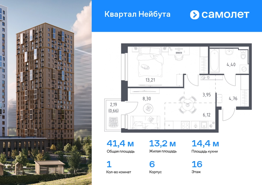 Предлагается 1-комнатная квартира комфорт-класса 41,4 кв.м в корпусе 6 на 16 этаже, в ЖК «Квартал Нейбута» Квартира с предчистовой отделкой. Доступность дополнительных опций уточняйте у застройщика. Приобрести квартиру возможно по специальным акциям от застройщика, с текущими условиями акций можно ознакомиться в блоке “Акций”. Цена динамическая и может отличаться, уточняйте актуальность у застройщика. В новом «Квартале Нейбута» захочется освободить галерею телефона — чтобы вместить коллекцию по-настоящему захватывающих кадров. В объектив вашей камеры попадут зеленые сопки, бескрайнее небо и другие красоты Приморского края. Квартал находится в одном из районов Владивостока, откуда легко добраться в любую точку города. Дорога до центра города, морского и ж/д вокзалов займет 30 минут на машине или 45 минут на автобусе. Планировать отпуск тоже удобно — международный аэропорт находится в часе езды от дома. Скоро в квартале будет удобный выезд на улицы Нейбута и Фадеева, откуда можно попасть на трассу Патрокл — Седанка — Де-Фриз — Новый. А к старту первой очереди будет готов северный заезд с твердым покрытием. В квартале можно выйти из дома и оказаться в большом парке с экотропами и прогулочными зонами. Выходите на пробежку или на познавательную прогулку с детьми — можно долго рассматривать растения и искать их названия в интернете. Побродите по тропам для терренкура и обязательно побывайте на смотровых площадках — ваша коллекция впечатлений точно пополнится. Вечером отправляйтесь полюбоваться на вантовый мост в свете огней. Вид на него откроется из бухты Золотой Рог, дорога до которой займет 20 минут на авто. Чтобы решать все повседневные дела, даже не обязательно далеко уходить от дома. На первых этажах корпусов откроются салоны красоты, магазины, пункты выдачи и кафе. Забегайте за утренним латте, новой прической или продуктами к обеду. Юным жителям квартала тоже не придется долго шагать по своим важным делам. Рядом с кварталом находятся 3 детских сада, общеобразовательная и школа искусств и развивающий центр «Пчелкин дом». А скоро недалеко от проекта появится еще одна школа на 1100 учеников. Ее планируют строить в 2026 году. 26-этажные дома с отделкой золотистых и благородных коричневых оттенков гармонично впишутся в живописный дальневосточный пейзаж. Объем фасадам придают витражные балконы, с которых открываются виды на Уссурийский залив. Закрытые дворы без машин — маленький мир, вдохновленный природой Приморского края. Стены домов украшают дальневосточные лианы, крыши — пышные ковры из трав. Еще мы установим дождевые сады, которые скроют последствия даже самого сильного ливня. Во дворе найдется интересное занятие для всех жителей квартала. Взрослые смогут устраивать тренировки на свежем воздухе в спортивных зонах, дети будут целый день веселиться на игровых площадках. А для четвероногих питомцев мы предусмотрели специальные зоны для выгула. Возвращайтесь домой из отпуска с чемоданом сувениров или самокатом из парка. Мы отказались от ступенек и порогов у входов в подъезд, поэтому путь будет легким и удобным. Оставить коляску или велосипед можно на первом этаже, в специальном помещении. А бабушкины закрутки и сноуборд можно хранить в кладовых на подземном этаже. Среди разнообразных планировок вы наверняка найдете квар
