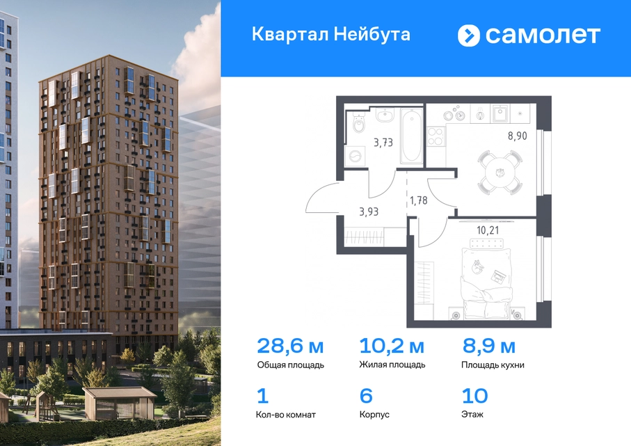 Предлагается 1-комнатная квартира комфорт-класса 28,55 кв.м в корпусе 6 на 10 этаже, в ЖК «Квартал Нейбута» Квартира с предчистовой отделкой. Доступность дополнительных опций уточняйте у застройщика. Приобрести квартиру возможно по специальным акциям от застройщика, с текущими условиями акций можно ознакомиться в блоке “Акций”. Цена динамическая и может отличаться, уточняйте актуальность у застройщика. В новом «Квартале Нейбута» захочется освободить галерею телефона — чтобы вместить коллекцию по-настоящему захватывающих кадров. В объектив вашей камеры попадут зеленые сопки, бескрайнее небо и другие красоты Приморского края. Квартал находится в одном из районов Владивостока, откуда легко добраться в любую точку города. Дорога до центра города, морского и ж/д вокзалов займет 30 минут на машине или 45 минут на автобусе. Планировать отпуск тоже удобно — международный аэропорт находится в часе езды от дома. Скоро в квартале будет удобный выезд на улицы Нейбута и Фадеева, откуда можно попасть на трассу Патрокл — Седанка — Де-Фриз — Новый. А к старту первой очереди будет готов северный заезд с твердым покрытием. В квартале можно выйти из дома и оказаться в большом парке с экотропами и прогулочными зонами. Выходите на пробежку или на познавательную прогулку с детьми — можно долго рассматривать растения и искать их названия в интернете. Побродите по тропам для терренкура и обязательно побывайте на смотровых площадках — ваша коллекция впечатлений точно пополнится. Вечером отправляйтесь полюбоваться на вантовый мост в свете огней. Вид на него откроется из бухты Золотой Рог, дорога до которой займет 20 минут на авто. Чтобы решать все повседневные дела, даже не обязательно далеко уходить от дома. На первых этажах корпусов откроются салоны красоты, магазины, пункты выдачи и кафе. Забегайте за утренним латте, новой прической или продуктами к обеду. Юным жителям квартала тоже не придется долго шагать по своим важным делам. Рядом с кварталом находятся 3 детских сада, общеобразовательная и школа искусств и развивающий центр «Пчелкин дом». А скоро недалеко от проекта появится еще одна школа на 1100 учеников. Ее планируют строить в 2026 году. 26-этажные дома с отделкой золотистых и благородных коричневых оттенков гармонично впишутся в живописный дальневосточный пейзаж. Объем фасадам придают витражные балконы, с которых открываются виды на Уссурийский залив. Закрытые дворы без машин — маленький мир, вдохновленный природой Приморского края. Стены домов украшают дальневосточные лианы, крыши — пышные ковры из трав. Еще мы установим дождевые сады, которые скроют последствия даже самого сильного ливня. Во дворе найдется интересное занятие для всех жителей квартала. Взрослые смогут устраивать тренировки на свежем воздухе в спортивных зонах, дети будут целый день веселиться на игровых площадках. А для четвероногих питомцев мы предусмотрели специальные зоны для выгула. Возвращайтесь домой из отпуска с чемоданом сувениров или самокатом из парка. Мы отказались от ступенек и порогов у входов в подъезд, поэтому путь будет легким и удобным. Оставить коляску или велосипед можно на первом этаже, в специальном помещении. А бабушкины закрутки и сноуборд можно хранить в кладовых на подземном этаже. Среди разнообразных планировок вы наверняка найдете квар