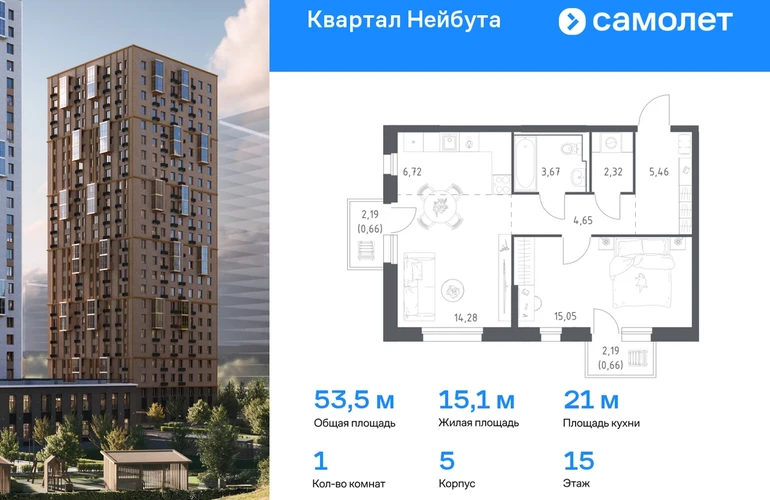 Предлагается 1-комнатная квартира комфорт-класса 53,47 кв.м в корпусе 5 на 15 этаже, в ЖК «Квартал Нейбута» Квартира с чистовой отделкой. Доступность дополнительных опций уточняйте у застройщика. Приобрести квартиру возможно по специальным акциям от застройщика, с текущими условиями акций можно ознакомиться в блоке “Акций”. Цена динамическая и может отличаться, уточняйте актуальность у застройщика. В новом «Квартале Нейбута» захочется освободить галерею телефона — чтобы вместить коллекцию по-настоящему захватывающих кадров. В объектив вашей камеры попадут зеленые сопки, бескрайнее небо и другие красоты Приморского края. Квартал находится в одном из районов Владивостока, откуда легко добраться в любую точку города. Дорога до центра города, морского и ж/д вокзалов займет 30 минут на машине или 45 минут на автобусе. Планировать отпуск тоже удобно — международный аэропорт находится в часе езды от дома. Скоро в квартале будет удобный выезд на улицы Нейбута и Фадеева, откуда можно попасть на трассу Патрокл — Седанка — Де-Фриз — Новый. А к старту первой очереди будет готов северный заезд с твердым покрытием. В квартале можно выйти из дома и оказаться в большом парке с экотропами и прогулочными зонами. Выходите на пробежку или на познавательную прогулку с детьми — можно долго рассматривать растения и искать их названия в интернете. Побродите по тропам для терренкура и обязательно побывайте на смотровых площадках — ваша коллекция впечатлений точно пополнится. Вечером отправляйтесь полюбоваться на вантовый мост в свете огней. Вид на него откроется из бухты Золотой Рог, дорога до которой займет 20 минут на авто. Чтобы решать все повседневные дела, даже не обязательно далеко уходить от дома. На первых этажах корпусов откроются салоны красоты, магазины, пункты выдачи и кафе. Забегайте за утренним латте, новой прической или продуктами к обеду. Юным жителям квартала тоже не придется долго шагать по своим важным делам. Рядом с кварталом находятся 3 детских сада, общеобразовательная и школа искусств и развивающий центр «Пчелкин дом». А скоро недалеко от проекта появится еще одна школа на 1100 учеников. Ее планируют строить в 2026 году. 26-этажные дома с отделкой золотистых и благородных коричневых оттенков гармонично впишутся в живописный дальневосточный пейзаж. Объем фасадам придают витражные балконы, с которых открываются виды на Уссурийский залив. Закрытые дворы без машин — маленький мир, вдохновленный природой Приморского края. Стены домов украшают дальневосточные лианы, крыши — пышные ковры из трав. Еще мы установим дождевые сады, которые скроют последствия даже самого сильного ливня. Во дворе найдется интересное занятие для всех жителей квартала. Взрослые смогут устраивать тренировки на свежем воздухе в спортивных зонах, дети будут целый день веселиться на игровых площадках. А для четвероногих питомцев мы предусмотрели специальные зоны для выгула. Возвращайтесь домой из отпуска с чемоданом сувениров или самокатом из парка. Мы отказались от ступенек и порогов у входов в подъезд, поэтому путь будет легким и удобным. Оставить коляску или велосипед можно на первом этаже, в специальном помещении. А бабушкины закрутки и сноуборд можно хранить в кладовых на подземном этаже. Среди разнообразных планировок вы наверняка найдете квартиру