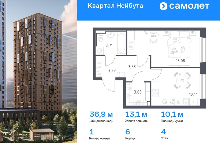 Предлагается 1-комнатная квартира комфорт-класса 36,93 кв.м в корпусе 6 на 4 этаже, в ЖК «Квартал Нейбута» Квартира с предчистовой отделкой. Доступность дополнительных опций уточняйте у застройщика. Приобрести квартиру возможно по специальным акциям от застройщика, с текущими условиями акций можно ознакомиться в блоке “Акций”. Цена динамическая и может отличаться, уточняйте актуальность у застройщика. В новом «Квартале Нейбута» захочется освободить галерею телефона — чтобы вместить коллекцию по-настоящему захватывающих кадров. В объектив вашей камеры попадут зеленые сопки, бескрайнее небо и другие красоты Приморского края. Квартал находится в одном из районов Владивостока, откуда легко добраться в любую точку города. Дорога до центра города, морского и ж/д вокзалов займет 30 минут на машине или 45 минут на автобусе. Планировать отпуск тоже удобно — международный аэропорт находится в часе езды от дома. Скоро в квартале будет удобный выезд на улицы Нейбута и Фадеева, откуда можно попасть на трассу Патрокл — Седанка — Де-Фриз — Новый. А к старту первой очереди будет готов северный заезд с твердым покрытием. В квартале можно выйти из дома и оказаться в большом парке с экотропами и прогулочными зонами. Выходите на пробежку или на познавательную прогулку с детьми — можно долго рассматривать растения и искать их названия в интернете. Побродите по тропам для терренкура и обязательно побывайте на смотровых площадках — ваша коллекция впечатлений точно пополнится. Вечером отправляйтесь полюбоваться на вантовый мост в свете огней. Вид на него откроется из бухты Золотой Рог, дорога до которой займет 20 минут на авто. Чтобы решать все повседневные дела, даже не обязательно далеко уходить от дома. На первых этажах корпусов откроются салоны красоты, магазины, пункты выдачи и кафе. Забегайте за утренним латте, новой прической или продуктами к обеду. Юным жителям квартала тоже не придется долго шагать по своим важным делам. Рядом с кварталом находятся 3 детских сада, общеобразовательная и школа искусств и развивающий центр «Пчелкин дом». А скоро недалеко от проекта появится еще одна школа на 1100 учеников. Ее планируют строить в 2026 году. 26-этажные дома с отделкой золотистых и благородных коричневых оттенков гармонично впишутся в живописный дальневосточный пейзаж. Объем фасадам придают витражные балконы, с которых открываются виды на Уссурийский залив. Закрытые дворы без машин — маленький мир, вдохновленный природой Приморского края. Стены домов украшают дальневосточные лианы, крыши — пышные ковры из трав. Еще мы установим дождевые сады, которые скроют последствия даже самого сильного ливня. Во дворе найдется интересное занятие для всех жителей квартала. Взрослые смогут устраивать тренировки на свежем воздухе в спортивных зонах, дети будут целый день веселиться на игровых площадках. А для четвероногих питомцев мы предусмотрели специальные зоны для выгула. Возвращайтесь домой из отпуска с чемоданом сувениров или самокатом из парка. Мы отказались от ступенек и порогов у входов в подъезд, поэтому путь будет легким и удобным. Оставить коляску или велосипед можно на первом этаже, в специальном помещении. А бабушкины закрутки и сноуборд можно хранить в кладовых на подземном этаже. Среди разнообразных планировок вы наверняка найдете квар