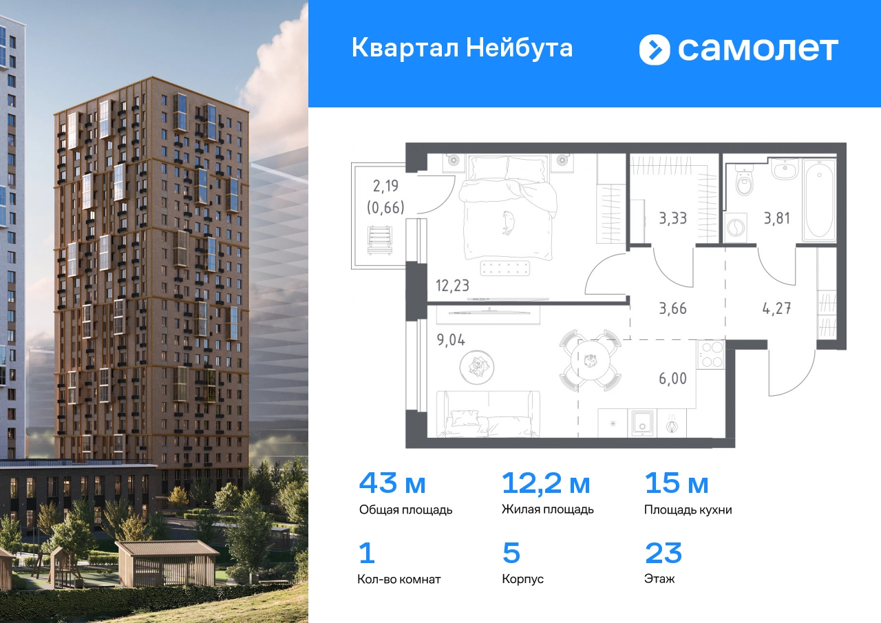 Предлагается 1-комнатная квартира комфорт-класса 43 кв.м в корпусе 5 на 23 этаже, в ЖК «Квартал Нейбута» Квартира с чистовой отделкой. Доступность дополнительных опций уточняйте у застройщика. Приобрести квартиру возможно по специальным акциям от застройщика, с текущими условиями акций можно ознакомиться в блоке “Акций”. Цена динамическая и может отличаться, уточняйте актуальность у застройщика. В новом «Квартале Нейбута» захочется освободить галерею телефона — чтобы вместить коллекцию по-настоящему захватывающих кадров. В объектив вашей камеры попадут зеленые сопки, бескрайнее небо и другие красоты Приморского края. Квартал находится в одном из районов Владивостока, откуда легко добраться в любую точку города. Дорога до центра города, морского и ж/д вокзалов займет 30 минут на машине или 45 минут на автобусе. Планировать отпуск тоже удобно — международный аэропорт находится в часе езды от дома. Скоро в квартале будет удобный выезд на улицы Нейбута и Фадеева, откуда можно попасть на трассу Патрокл — Седанка — Де-Фриз — Новый. А к старту первой очереди будет готов северный заезд с твердым покрытием. В квартале можно выйти из дома и оказаться в большом парке с экотропами и прогулочными зонами. Выходите на пробежку или на познавательную прогулку с детьми — можно долго рассматривать растения и искать их названия в интернете. Побродите по тропам для терренкура и обязательно побывайте на смотровых площадках — ваша коллекция впечатлений точно пополнится. Вечером отправляйтесь полюбоваться на вантовый мост в свете огней. Вид на него откроется из бухты Золотой Рог, дорога до которой займет 20 минут на авто. Чтобы решать все повседневные дела, даже не обязательно далеко уходить от дома. На первых этажах корпусов откроются салоны красоты, магазины, пункты выдачи и кафе. Забегайте за утренним латте, новой прической или продуктами к обеду. Юным жителям квартала тоже не придется долго шагать по своим важным делам. Рядом с кварталом находятся 3 детских сада, общеобразовательная и школа искусств и развивающий центр «Пчелкин дом». А скоро недалеко от проекта появится еще одна школа на 1100 учеников. Ее планируют строить в 2026 году. 26-этажные дома с отделкой золотистых и благородных коричневых оттенков гармонично впишутся в живописный дальневосточный пейзаж. Объем фасадам придают витражные балконы, с которых открываются виды на Уссурийский залив. Закрытые дворы без машин — маленький мир, вдохновленный природой Приморского края. Стены домов украшают дальневосточные лианы, крыши — пышные ковры из трав. Еще мы установим дождевые сады, которые скроют последствия даже самого сильного ливня. Во дворе найдется интересное занятие для всех жителей квартала. Взрослые смогут устраивать тренировки на свежем воздухе в спортивных зонах, дети будут целый день веселиться на игровых площадках. А для четвероногих питомцев мы предусмотрели специальные зоны для выгула. Возвращайтесь домой из отпуска с чемоданом сувениров или самокатом из парка. Мы отказались от ступенек и порогов у входов в подъезд, поэтому путь будет легким и удобным. Оставить коляску или велосипед можно на первом этаже, в специальном помещении. А бабушкины закрутки и сноуборд можно хранить в кладовых на подземном этаже. Среди разнообразных планировок вы наверняка найдете квартиру м