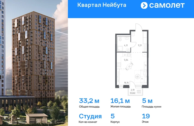Строим кварталы для жизни с заботой о будущем. Предлагается квартира студия комфорт-класса 33,16 кв.м в корпусе 5 на 19 этаже, в ЖК «Квартал Нейбута» Квартира с чистовой отделкой. Доступность дополнительных опций уточняйте у застройщика. Приобрести квартиру возможно по специальным акциям от застройщика, с текущими условиями акций можно ознакомиться в блоке «Акций». Цена динамическая и может отличаться, уточняйте актуальность у застройщика. «Квартал Нейбута» находится в Ленинском районе Владивостока. Дорога до центра города, морского и ж/д вокзалов займет 30 минут на машине или 45 минут на автобусе. Международный аэропорт находится в часе езды от дома. Скоро в квартале будет удобный выезд, откуда можно попасть на трассу Патрокл — Седанка — Де-Фриз — Новый. 26-этажные дома с отделкой золотистых и благородных коричневых оттенков гармонично впишутся в живописный дальневосточный пейзаж. Объем фасадам придают витражные балконы. Закрытые дворы без машин — маленький мир, вдохновленный природой Приморского края. Во дворе найдется занятие для всех жителей квартала. Взрослые смогут устраивать тренировки в спортивных зонах, дети будут веселиться на игровых площадках. А для четвероногих питомцев мы предусмотрели специальные зоны для выгула. Мы отказались от ступенек и порогов у входов в подъезд. Оставить коляску или велосипед можно на первом этаже, в специальном помещении. На подземном этаже предусмотрены кладовые.#yan19-2r1790281#О застройщике
