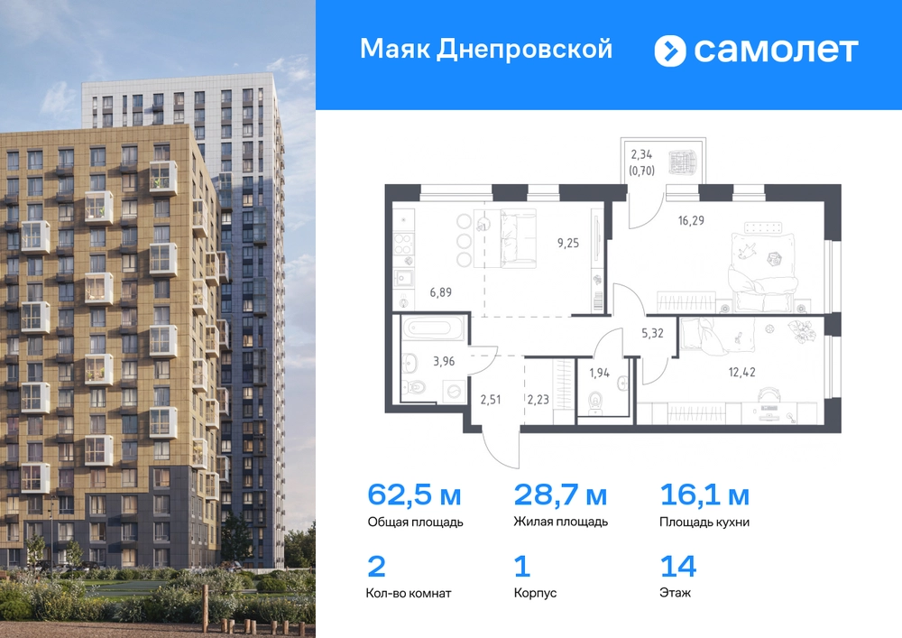 Предлагается 2-комнатная квартира комфорт-класса 62,51 кв.м в корпусе 1 на 14 этаже, в ЖК «Маяк Днепровской» Квартира с предчистовой отделкой. Доступность дополнительных опций уточняйте у застройщика. Приобрести квартиру возможно по специальным акциям от застройщика, с текущими условиями акций можно ознакомиться в блоке “Акций”. Цена динамическая и может отличаться, уточняйте актуальность у застройщика. "Маяк Днепровской" — это маленький город с домами высотой от 17 до 30 этажей. Мы строим современные здания со стилобатами и террасами, которые отвечают архитектурным трендам, но при этом гармонично вписываются в окружающие пейзажи. Переменная этажность домов повторяет уникальный дальневосточный ландшафт, а оттенки фасадов перекликаются с красками природы. Здесь вы будете любоваться живописными закатами и встречать рассветы с панорамного балкона. #yan19-2r1718785#О застройщике