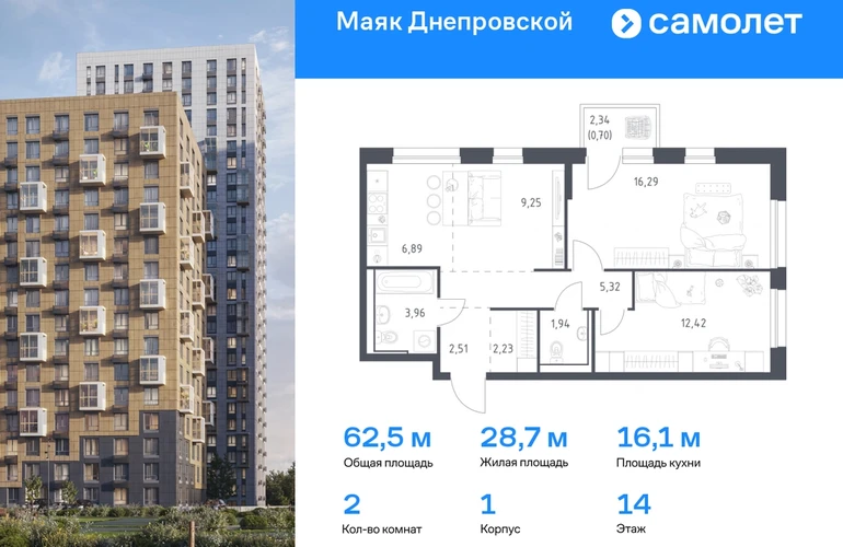 Предлагается 2-комнатная квартира комфорт-класса 62,51 кв.м в корпусе 1 на 14 этаже, в ЖК «Маяк Днепровской» Квартира с предчистовой отделкой. Доступность дополнительных опций уточняйте у застройщика. Приобрести квартиру возможно по специальным акциям от застройщика, с текущими условиями акций можно ознакомиться в блоке “Акций”. Цена динамическая и может отличаться, уточняйте актуальность у застройщика. "Маяк Днепровской" — это маленький город с домами высотой от 17 до 30 этажей. Мы строим современные здания со стилобатами и террасами, которые отвечают архитектурным трендам, но при этом гармонично вписываются в окружающие пейзажи. Переменная этажность домов повторяет уникальный дальневосточный ландшафт, а оттенки фасадов перекликаются с красками природы. Здесь вы будете любоваться живописными закатами и встречать рассветы с панорамного балкона. #yan19-2r1718785#О застройщике