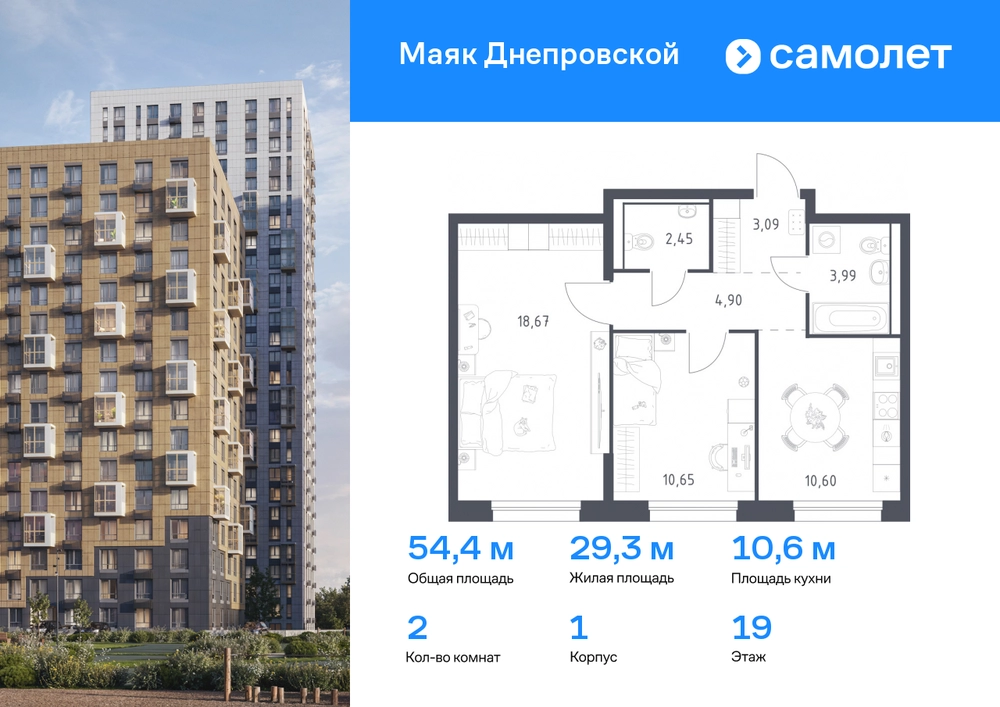 Строим кварталы для жизни с заботой о будущем. Предлагается 2-комнатная квартира комфорт-класса 54,36 кв.м в корпусе 1 на 19 этаже, в ЖК «Маяк Днепровской» Квартира с предчистовой отделкой. Доступность дополнительных опций уточняйте у застройщика. Приобрести квартиру возможно по специальным акциям от застройщика, с текущими условиями акций можно ознакомиться в блоке «Акций». Цена динамическая и может отличаться, уточняйте актуальность у застройщика. «Маяк Днепровской» — это маленький город с домами высотой от 17 до 30 этажей. Мы строим современные здания со стилобатами и террасами, которые отвечают архитектурным трендам, но при этом гармонично вписываются в окружающие пейзажи. Переменная этажность домов повторяет уникальный дальневосточный ландшафт, а оттенки фасадов перекликаются с красками природы. Здесь вы будете любоваться живописными закатами и встречать рассветы с панорамного балкона. #yan19-2r1718792#О застройщике