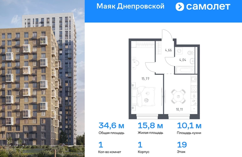 Предлагается 1-комнатная квартира комфорт-класса 34,58 кв.м в корпусе 1 на 19 этаже, в ЖК «Маяк Днепровской» Квартира с предчистовой отделкой. Доступность дополнительных опций уточняйте у застройщика. Приобрести квартиру возможно по специальным акциям от застройщика, с текущими условиями акций можно ознакомиться в блоке “Акций”. Цена динамическая и может отличаться, уточняйте актуальность у застройщика. "Маяк Днепровской" — это маленький город с домами высотой от 17 до 30 этажей. Мы строим современные здания со стилобатами и террасами, которые отвечают архитектурным трендам, но при этом гармонично вписываются в окружающие пейзажи. Переменная этажность домов повторяет уникальный дальневосточный ландшафт, а оттенки фасадов перекликаются с красками природы. Здесь вы будете любоваться живописными закатами и встречать рассветы с панорамного балкона. #yan19-2r1718797#О застройщике