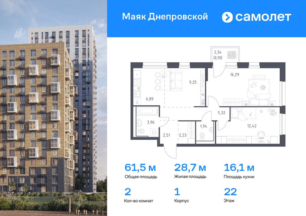 Строим кварталы для жизни с заботой о будущем. Предлагается 2-комнатная квартира комфорт-класса 61,51 кв.м в корпусе 1 на 22 этаже, в ЖК «Маяк Днепровской» Квартира без отделки. Доступность опции «отделка» и возможность комплектации мебелью и декором уточняйте у застройщика. Приобрести квартиру возможно по специальным акциям от застройщика, с текущими условиями акций можно ознакомиться в блоке «Акций». Цена динамическая и может отличаться, уточняйте актуальность у застройщика. «Маяк Днепровской» — это маленький город с домами высотой от 17 до 30 этажей. Мы строим современные здания со стилобатами и террасами, которые отвечают архитектурным трендам, но при этом гармонично вписываются в окружающие пейзажи. Переменная этажность домов повторяет уникальный дальневосточный ландшафт, а оттенки фасадов перекликаются с красками природы. Здесь вы будете любоваться живописными закатами и встречать рассветы с панорамного балкона. #yan19-2r1731194#О застройщике