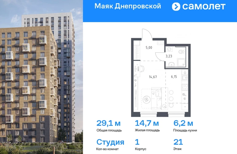 Строим кварталы для жизни с заботой о будущем. Предлагается квартира студия комфорт-класса 29,03 кв.м в корпусе 1 на 21 этаже, в ЖК «Маяк Днепровской» Квартира с предчистовой отделкой. Доступность дополнительных опций уточняйте у застройщика. Приобрести квартиру возможно по специальным акциям от застройщика, с текущими условиями акций можно ознакомиться в блоке «Акций». Цена динамическая и может отличаться, уточняйте актуальность у застройщика. «Маяк Днепровской» — это маленький город с домами высотой от 17 до 30 этажей. Мы строим современные здания со стилобатами и террасами, которые отвечают архитектурным трендам, но при этом гармонично вписываются в окружающие пейзажи. Переменная этажность домов повторяет уникальный дальневосточный ландшафт, а оттенки фасадов перекликаются с красками природы. Здесь вы будете любоваться живописными закатами и встречать рассветы с панорамного балкона. #yan19-2r1761231#О застройщике