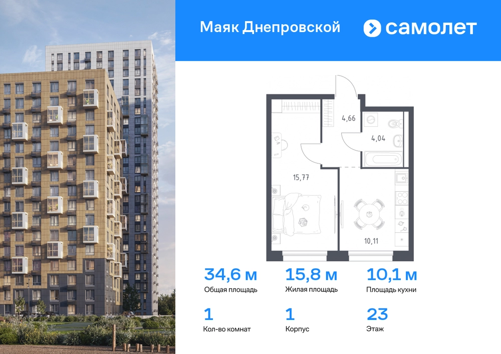 Предлагается 1-комнатная квартира комфорт-класса 34,58 кв.м в корпусе 1 на 23 этаже, в ЖК «Маяк Днепровской» Квартира без отделки. Доступность опции "отделка" и возможность комплектации мебелью и декором уточняйте у застройщика. Приобрести квартиру возможно по специальным акциям от застройщика, с текущими условиями акций можно ознакомиться в блоке “Акций”. Цена динамическая и может отличаться, уточняйте актуальность у застройщика. "Маяк Днепровской" — это маленький город с домами высотой от 17 до 30 этажей. Мы строим современные здания со стилобатами и террасами, которые отвечают архитектурным трендам, но при этом гармонично вписываются в окружающие пейзажи. Переменная этажность домов повторяет уникальный дальневосточный ландшафт, а оттенки фасадов перекликаются с красками природы. Здесь вы будете любоваться живописными закатами и встречать рассветы с панорамного балкона. #yan19-2r1761234#О застройщике