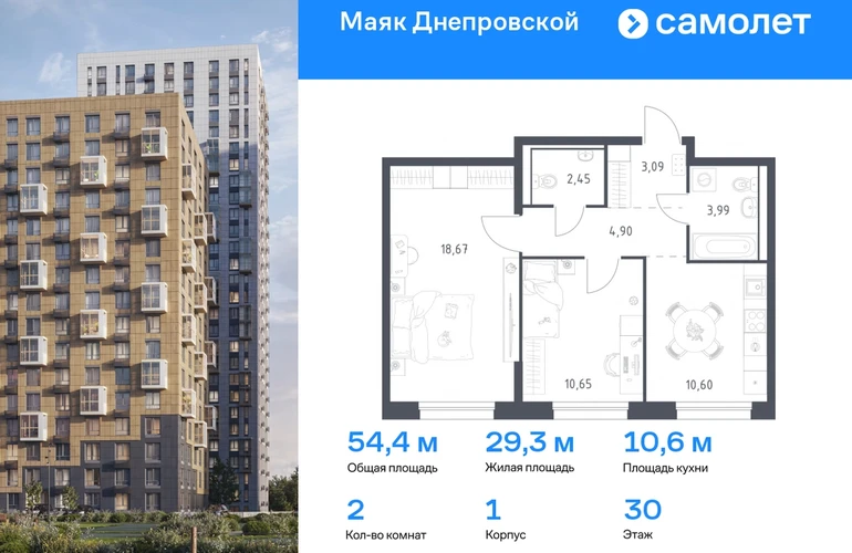 Строим кварталы для жизни с заботой о будущем. Предлагается 2-комнатная квартира комфорт-класса 54,36 кв.м в корпусе 1 на 30 этаже, в ЖК «Маяк Днепровской» Квартира без отделки. Доступность опции «отделка» и возможность комплектации мебелью и декором уточняйте у застройщика. Приобрести квартиру возможно по специальным акциям от застройщика, с текущими условиями акций можно ознакомиться в блоке «Акций». Цена динамическая и может отличаться, уточняйте актуальность у застройщика. «Маяк Днепровской» — это маленький город с домами высотой от 17 до 30 этажей. Мы строим современные здания со стилобатами и террасами, которые отвечают архитектурным трендам, но при этом гармонично вписываются в окружающие пейзажи. Переменная этажность домов повторяет уникальный дальневосточный ландшафт, а оттенки фасадов перекликаются с красками природы. Здесь вы будете любоваться живописными закатами и встречать рассветы с панорамного балкона. #yan19-2r1772449#О застройщике