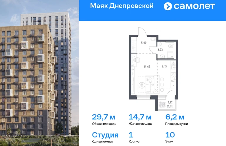 Предлагается квартира студия комфорт-класса 29,72 кв.м в корпусе 1 на 10 этаже, в ЖК «Маяк Днепровской» Квартира с чистовой отделкой. Доступность дополнительных опций уточняйте у застройщика. Приобрести квартиру возможно по специальным акциям от застройщика, с текущими условиями акций можно ознакомиться в блоке “Акций”. Цена динамическая и может отличаться, уточняйте актуальность у застройщика. "Маяк Днепровской" — это маленький город с домами высотой от 17 до 30 этажей. Мы строим современные здания со стилобатами и террасами, которые отвечают архитектурным трендам, но при этом гармонично вписываются в окружающие пейзажи. Переменная этажность домов повторяет уникальный дальневосточный ландшафт, а оттенки фасадов перекликаются с красками природы. Здесь вы будете любоваться живописными закатами и встречать рассветы с панорамного балкона. #yan19-2r1772729#О застройщике