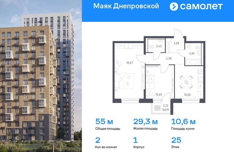 Строим кварталы для жизни с заботой о будущем. Предлагается 2-комнатная квартира комфорт-класса 55,03 кв.м в корпусе 1 на 25 этаже, в ЖК «Маяк Днепровской» Квартира без отделки. Доступность опции «отделка» и возможность комплектации мебелью и декором уточняйте у застройщика. Приобрести квартиру возможно по специальным акциям от застройщика, с текущими условиями акций можно ознакомиться в блоке «Акций». Цена динамическая и может отличаться, уточняйте актуальность у застройщика. «Маяк Днепровской» — это маленький город с домами высотой от 17 до 30 этажей. Мы строим современные здания со стилобатами и террасами, которые отвечают архитектурным трендам, но при этом гармонично вписываются в окружающие пейзажи. Переменная этажность домов повторяет уникальный дальневосточный ландшафт, а оттенки фасадов перекликаются с красками природы. Здесь вы будете любоваться живописными закатами и встречать рассветы с панорамного балкона. #yan19-2r1773990#О застройщике