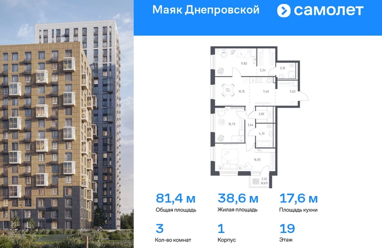 Строим кварталы для жизни с заботой о будущем. Предлагается 3-комнатная квартира комфорт-класса 81,58 кв.м в корпусе 1 на 19 этаже, в ЖК «Маяк Днепровской» Квартира с предчистовой отделкой. Доступность дополнительных опций уточняйте у застройщика. Приобрести квартиру возможно по специальным акциям от застройщика, с текущими условиями акций можно ознакомиться в блоке «Акций». Цена динамическая и может отличаться, уточняйте актуальность у застройщика. «Маяк Днепровской» — это маленький город с домами высотой от 17 до 30 этажей. Мы строим современные здания со стилобатами и террасами, которые отвечают архитектурным трендам, но при этом гармонично вписываются в окружающие пейзажи. Переменная этажность домов повторяет уникальный дальневосточный ландшафт, а оттенки фасадов перекликаются с красками природы. Здесь вы будете любоваться живописными закатами и встречать рассветы с панорамного балкона. #yan19-2r1781282#О застройщике