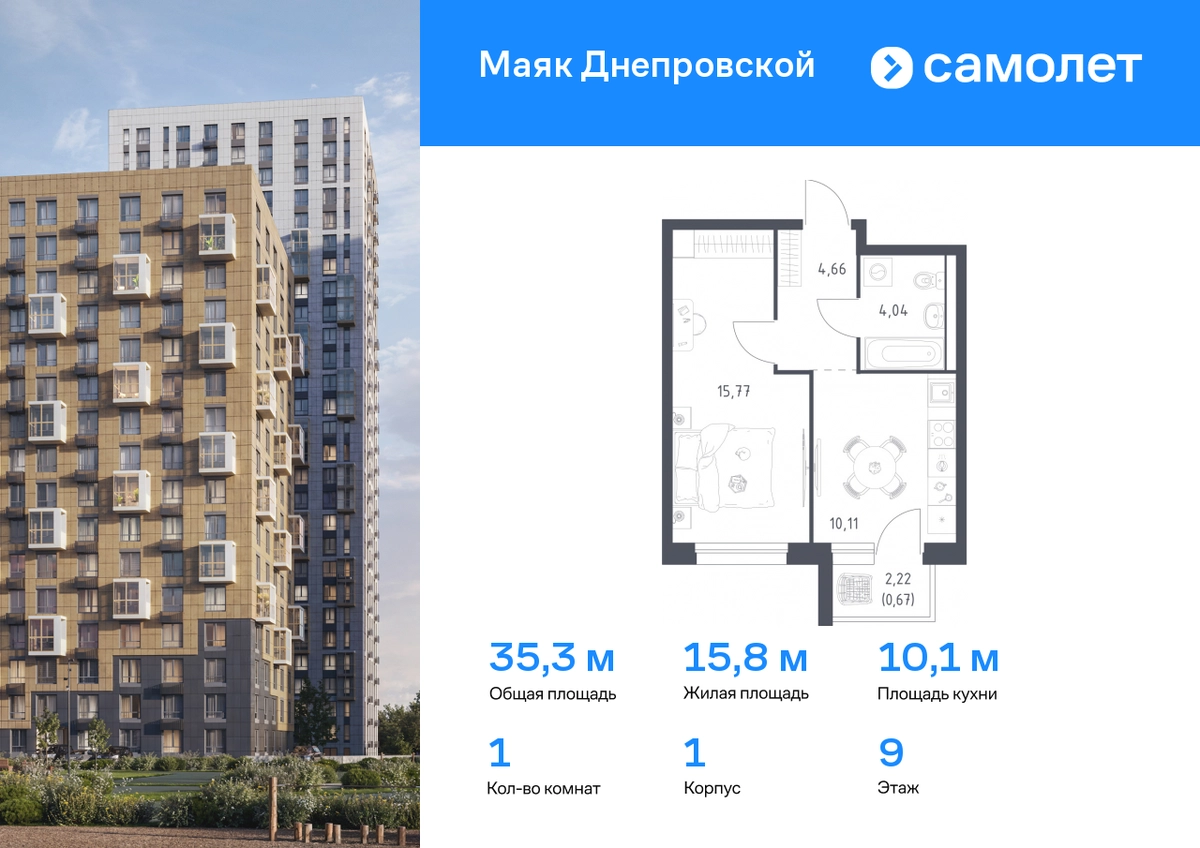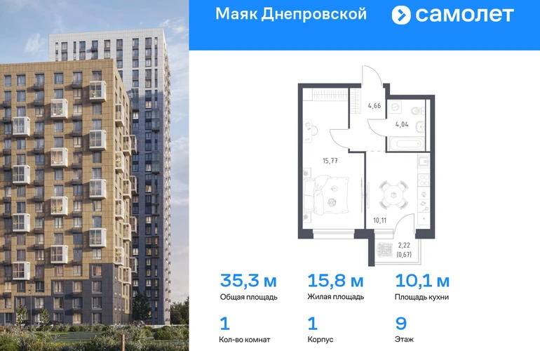 Предлагается 1-комнатная квартира комфорт-класса 35,25 кв.м в корпусе 1 на 9 этаже, в ЖК «Маяк Днепровской» Квартира с чистовой отделкой. Доступность дополнительных опций уточняйте у застройщика. Приобрести квартиру возможно по специальным акциям от застройщика, с текущими условиями акций можно ознакомиться в блоке “Акций”. Цена динамическая и может отличаться, уточняйте актуальность у застройщика. "Маяк Днепровской" — это маленький город с домами высотой от 17 до 30 этажей. Мы строим современные здания со стилобатами и террасами, которые отвечают архитектурным трендам, но при этом гармонично вписываются в окружающие пейзажи. Переменная этажность домов повторяет уникальный дальневосточный ландшафт, а оттенки фасадов перекликаются с красками природы. Здесь вы будете любоваться живописными закатами и встречать рассветы с панорамного балкона. #yan19-2r1788795#О застройщике
