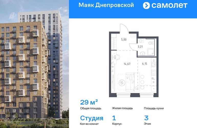 Строим кварталы для жизни с заботой о будущем. Предлагается квартира студия комфорт-класса 29,03 кв.м в корпусе 1 на 3 этаже, в ЖК «Маяк Днепровской» Квартира с чистовой отделкой. Доступность дополнительных опций уточняйте у застройщика. Приобрести квартиру возможно по специальным акциям от застройщика, с текущими условиями акций можно ознакомиться в блоке «Акций». Цена динамическая и может отличаться, уточняйте актуальность у застройщика. «Маяк Днепровской» — это маленький город с домами высотой от 17 до 30 этажей. Мы строим современные здания со стилобатами и террасами, которые отвечают архитектурным трендам, но при этом гармонично вписываются в окружающие пейзажи. Переменная этажность домов повторяет уникальный дальневосточный ландшафт, а оттенки фасадов перекликаются с красками природы. Здесь вы будете любоваться живописными закатами и встречать рассветы с панорамного балкона. #yan19-2r1802004#О застройщике