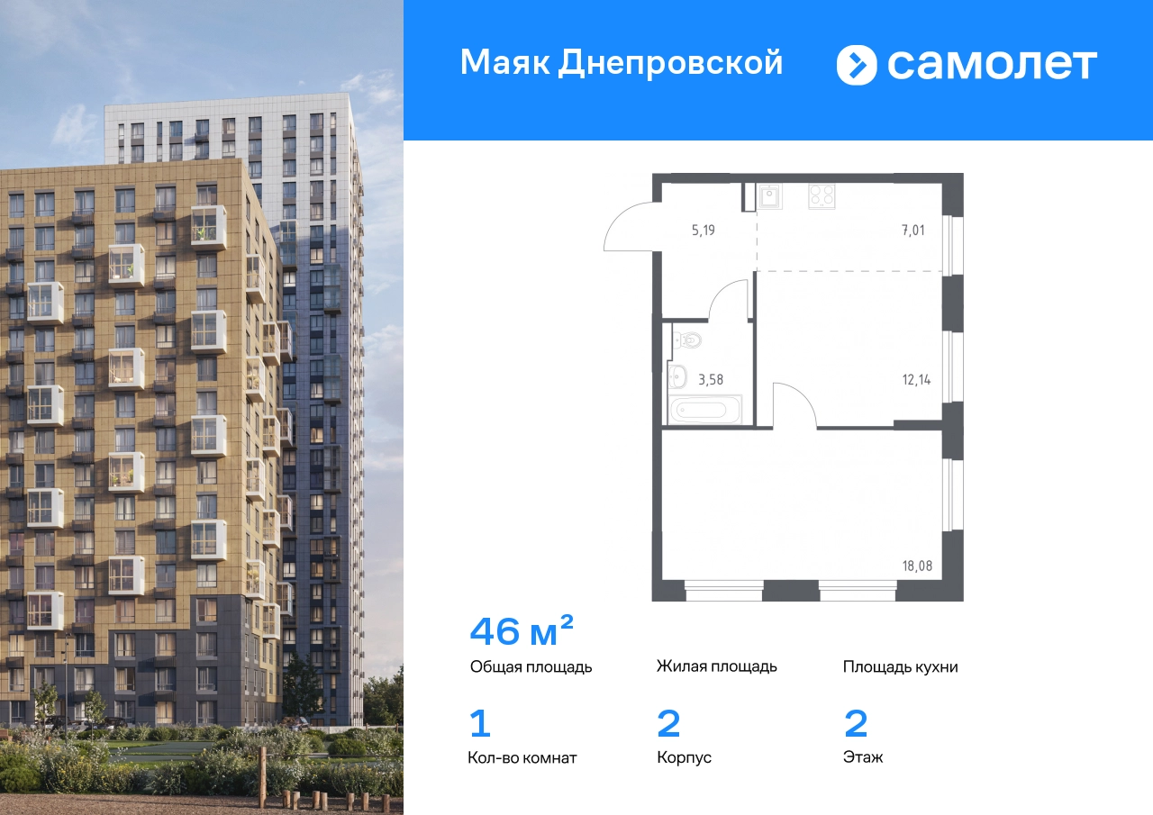 Строим кварталы для жизни с заботой о будущем. Предлагается 1-комнатная квартира комфорт-класса 46 кв.м в корпусе 2 на 2 этаже, в ЖК «Маяк Днепровской» Квартира без отделки. Доступность опции «отделка» и возможность комплектации мебелью и декором уточняйте у застройщика. Приобрести квартиру возможно по специальным акциям от застройщика, с текущими условиями акций можно ознакомиться в блоке «Акций». Цена динамическая и может отличаться, уточняйте актуальность у застройщика. «Маяк Днепровской» — это маленький город с домами высотой от 17 до 30 этажей. Мы строим современные здания со стилобатами и террасами, которые отвечают архитектурным трендам, но при этом гармонично вписываются в окружающие пейзажи. Переменная этажность домов повторяет уникальный дальневосточный ландшафт, а оттенки фасадов перекликаются с красками природы. Здесь вы будете любоваться живописными закатами и встречать рассветы с панорамного балкона. #yan19-2r1815874#О застройщике