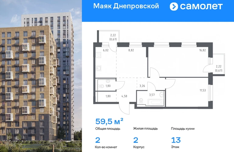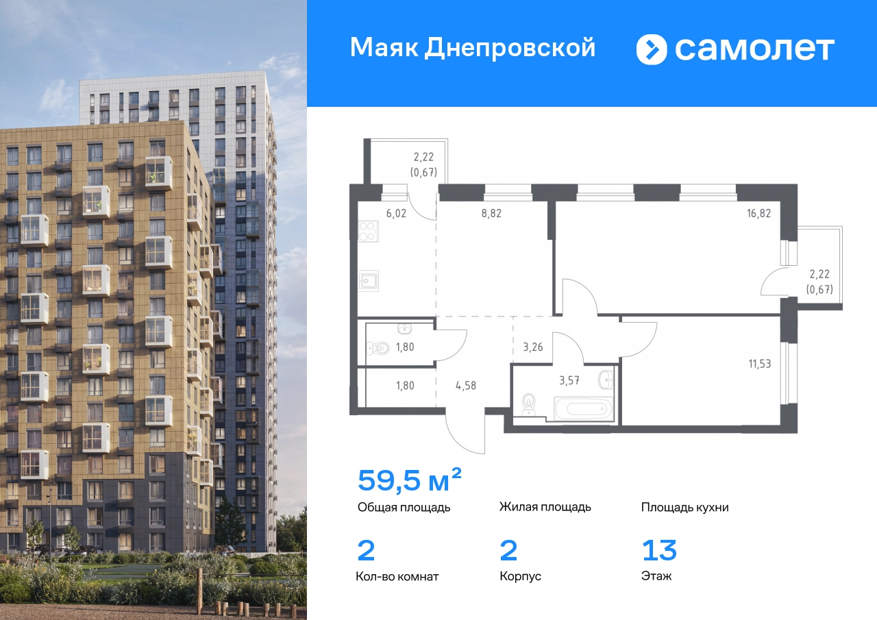 Строим кварталы для жизни с заботой о будущем. Предлагается 2-комнатная квартира комфорт-класса 59,54 кв.м в корпусе 2 на 13 этаже, в ЖК «Маяк Днепровской» Квартира с предчистовой отделкой. Доступность дополнительных опций уточняйте у застройщика. Приобрести квартиру возможно по специальным акциям от застройщика, с текущими условиями акций можно ознакомиться в блоке «Акций». Цена динамическая и может отличаться, уточняйте актуальность у застройщика. «Маяк Днепровской» — это маленький город с домами высотой от 17 до 30 этажей. Мы строим современные здания со стилобатами и террасами, которые отвечают архитектурным трендам, но при этом гармонично вписываются в окружающие пейзажи. Переменная этажность домов повторяет уникальный дальневосточный ландшафт, а оттенки фасадов перекликаются с красками природы. Здесь вы будете любоваться живописными закатами и встречать рассветы с панорамного балкона. #yan19-2r1815900#О застройщике