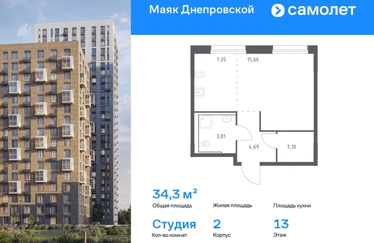 Строим кварталы для жизни с заботой о будущем. Предлагается квартира студия комфорт-класса 34,31 кв.м в корпусе 2 на 13 этаже, в ЖК «Маяк Днепровской» Квартира с предчистовой отделкой. Доступность дополнительных опций уточняйте у застройщика. Приобрести квартиру возможно по специальным акциям от застройщика, с текущими условиями акций можно ознакомиться в блоке «Акций». Цена динамическая и может отличаться, уточняйте актуальность у застройщика. «Маяк Днепровской» — это маленький город с домами высотой от 17 до 30 этажей. Мы строим современные здания со стилобатами и террасами, которые отвечают архитектурным трендам, но при этом гармонично вписываются в окружающие пейзажи. Переменная этажность домов повторяет уникальный дальневосточный ландшафт, а оттенки фасадов перекликаются с красками природы. Здесь вы будете любоваться живописными закатами и встречать рассветы с панорамного балкона. #yan19-2r1815901#О застройщике