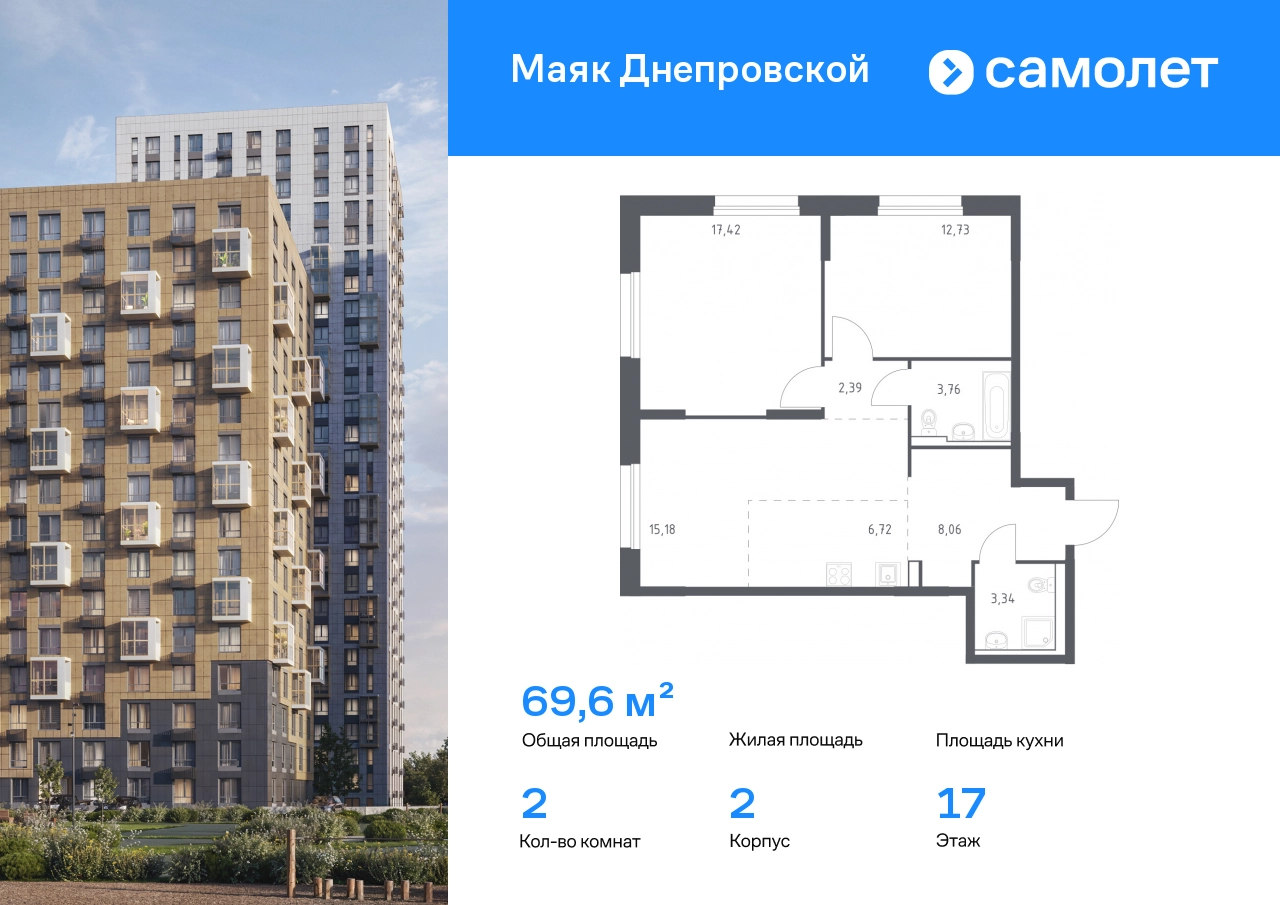 Строим кварталы для жизни с заботой о будущем. Предлагается 2-комнатная квартира комфорт-класса 69,6 кв.м в корпусе 2 на 17 этаже, в ЖК «Маяк Днепровской» Квартира с предчистовой отделкой. Доступность дополнительных опций уточняйте у застройщика. Приобрести квартиру возможно по специальным акциям от застройщика, с текущими условиями акций можно ознакомиться в блоке «Акций». Цена динамическая и может отличаться, уточняйте актуальность у застройщика. «Маяк Днепровской» — это маленький город с домами высотой от 17 до 30 этажей. Мы строим современные здания со стилобатами и террасами, которые отвечают архитектурным трендам, но при этом гармонично вписываются в окружающие пейзажи. Переменная этажность домов повторяет уникальный дальневосточный ландшафт, а оттенки фасадов перекликаются с красками природы. Здесь вы будете любоваться живописными закатами и встречать рассветы с панорамного балкона. #yan19-2r1819067#О застройщике