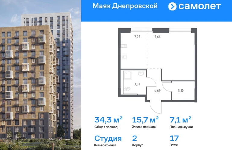 Строим кварталы для жизни с заботой о будущем. Предлагается квартира студия комфорт-класса 34,31 кв.м в корпусе 2 на 17 этаже, в ЖК «Маяк Днепровской» Квартира с предчистовой отделкой. Доступность дополнительных опций уточняйте у застройщика. Приобрести квартиру возможно по специальным акциям от застройщика, с текущими условиями акций можно ознакомиться в блоке «Акций». Цена динамическая и может отличаться, уточняйте актуальность у застройщика. «Маяк Днепровской» — это маленький город с домами высотой от 17 до 30 этажей. Мы строим современные здания со стилобатами и террасами, которые отвечают архитектурным трендам, но при этом гармонично вписываются в окружающие пейзажи. Переменная этажность домов повторяет уникальный дальневосточный ландшафт, а оттенки фасадов перекликаются с красками природы. Здесь вы будете любоваться живописными закатами и встречать рассветы с панорамного балкона. #yan19-2r1819068#О застройщике