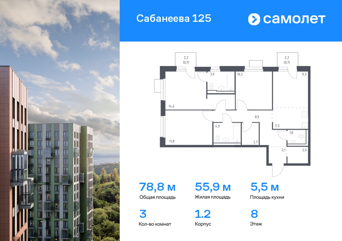 Предлагается 3-комнатная квартира комфорт-класса 78,8 кв.м в корпусе 1.2 на 8 этаже, в ЖК «Сабанеева 125» Квартира без отделки. Доступность опции «отделка» и возможность комплектации мебелью и декором уточняйте у застройщика. Приобрести квартиру возможно по специальным акциям от застройщика, с текущими условиями акций можно ознакомиться в блоке «Акций». Цена динамическая и может отличаться, уточняйте актуальность у застройщика. В жилом комплексе «Сабанеева 125» вы ежедневно будете наслаждаться видами сопок. Холмистый рельеф защищает территорию от ветра. Комплекс расположен в Первореченском районе Владивостока, всего в 20 минутах на машине до центра города. На первых этажах откроются супермаркеты, кафе и пекарни. Для малышей — детский сад в 2 минутах пешком и школа в 10 минутах. За 6 минут можно доехать до Нагорного парка, а за 15 минут — до набережной Цесаревича с панорамой Золотого моста. Комплекс состоит из 3 монолитных домов высотой 25 этажей с фасадами, дизайн которых вдохновлен птицами Дальнего Востока. Дворы оформлены как сад с дальневосточной флорой, есть смотровые площадки, скалодром, перголы и игровые зоны для детей. Подземный паркинг — трехуровневый. В сквозные подъезды без ступеней и с помещением для колясок удобно заходить. В жилом комплексе «Сабанеева 125» есть квартиры с индивидуальными зелеными террасами, увеличенными окнами и панорамными балконами для чаепитий с видом на сопки и залив.#yan19-2r1490895#О застройщике