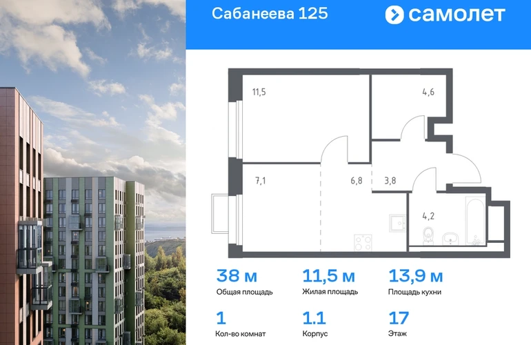 Строим кварталы для жизни с заботой о будущем. Предлагается 1-комнатная квартира комфорт-класса 38 кв.м в корпусе 1.1 на 17 этаже, в ЖК «Сабанеева 125» Квартира без отделки. Доступность опции «отделка» и возможность комплектации мебелью и декором уточняйте у застройщика. Приобрести квартиру возможно по специальным акциям от застройщика, с текущими условиями акций можно ознакомиться в блоке «Акций». Цена динамическая и может отличаться, уточняйте актуальность у застройщика. В жилом комплексе «Сабанеева 125» вы ежедневно будете наслаждаться видами сопок. Холмистый рельеф защищает территорию от ветра. Комплекс расположен в Первореченском районе Владивостока, всего в 20 минутах на машине до центра города. На первых этажах откроются супермаркеты, кафе и пекарни. Для малышей — детский сад в 2 минутах пешком и школа в 10 минутах. За 6 минут можно доехать до Нагорного парка, а за 15 минут — до набережной Цесаревича с панорамой Золотого моста. Комплекс состоит из 3 монолитных домов высотой 25 этажей с фасадами, дизайн которых вдохновлен птицами Дальнего Востока. Дворы оформлены как сад с дальневосточной флорой, есть смотровые площадки, скалодром, перголы и игровые зоны для детей. Подземный паркинг — трехуровневый. В сквозные подъезды без ступеней и с помещением для колясок удобно заходить. В жилом комплексе «Сабанеева 125» есть квартиры с индивидуальными зелеными террасами, увеличенными окнами и панорамными балконами для чаепитий с видом на сопки и залив.#yan19-2r1595445#О застройщике