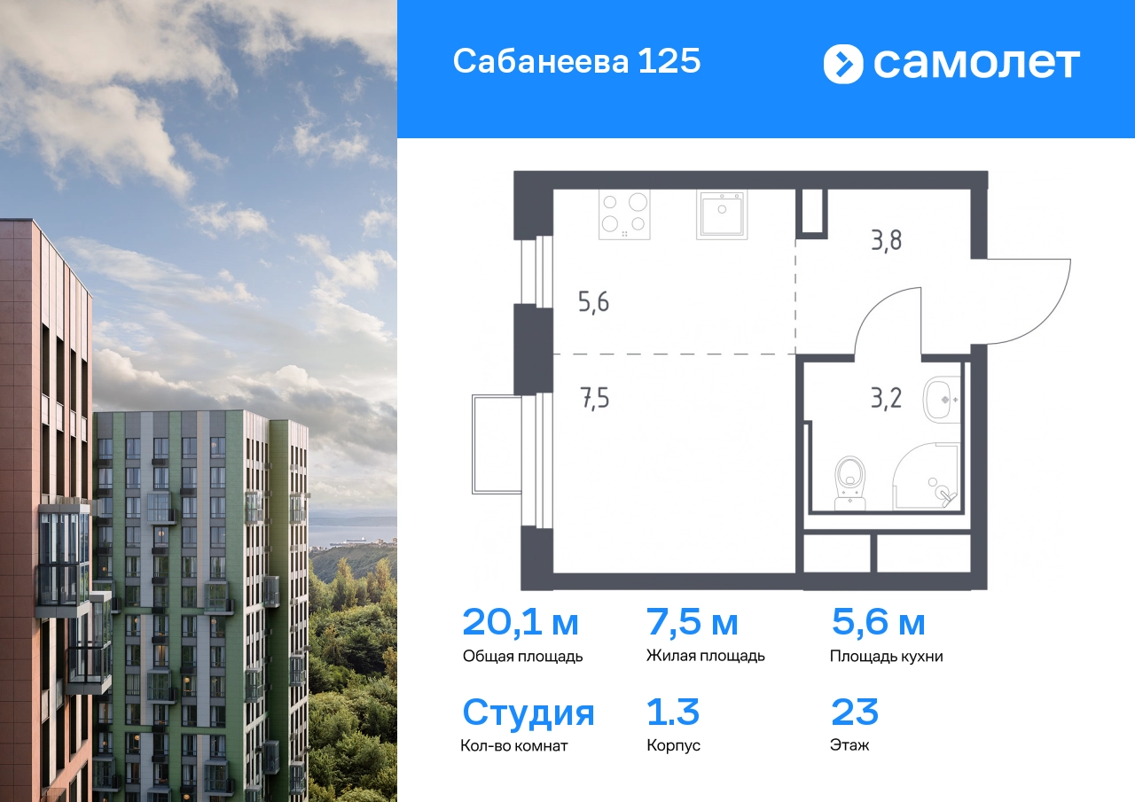 Предлагается квартира студия комфорт-класса 20,1 кв.м в корпусе 1.3 на 23 этаже, в ЖК «Сабанеева 125» Квартира без отделки. Доступность опции «отделка» и возможность комплектации мебелью и декором уточняйте у застройщика. Приобрести квартиру возможно по специальным акциям от застройщика, с текущими условиями акций можно ознакомиться в блоке «Акций». Цена динамическая и может отличаться, уточняйте актуальность у застройщика. В жилом комплексе «Сабанеева 125» вы ежедневно будете наслаждаться видами сопок. Холмистый рельеф защищает территорию от ветра. Комплекс расположен в Первореченском районе Владивостока, всего в 20 минутах на машине до центра города. На первых этажах откроются супермаркеты, кафе и пекарни. Для малышей — детский сад в 2 минутах пешком и школа в 10 минутах. За 6 минут можно доехать до Нагорного парка, а за 15 минут — до набережной Цесаревича с панорамой Золотого моста. Комплекс состоит из 3 монолитных домов высотой 25 этажей с фасадами, дизайн которых вдохновлен птицами Дальнего Востока. Дворы оформлены как сад с дальневосточной флорой, есть смотровые площадки, скалодром, перголы и игровые зоны для детей. Подземный паркинг — трехуровневый. В сквозные подъезды без ступеней и с помещением для колясок удобно заходить. В жилом комплексе «Сабанеева 125» есть квартиры с индивидуальными зелеными террасами, увеличенными окнами и панорамными балконами для чаепитий с видом на сопки и залив.#yan19-2r1607166#О застройщике